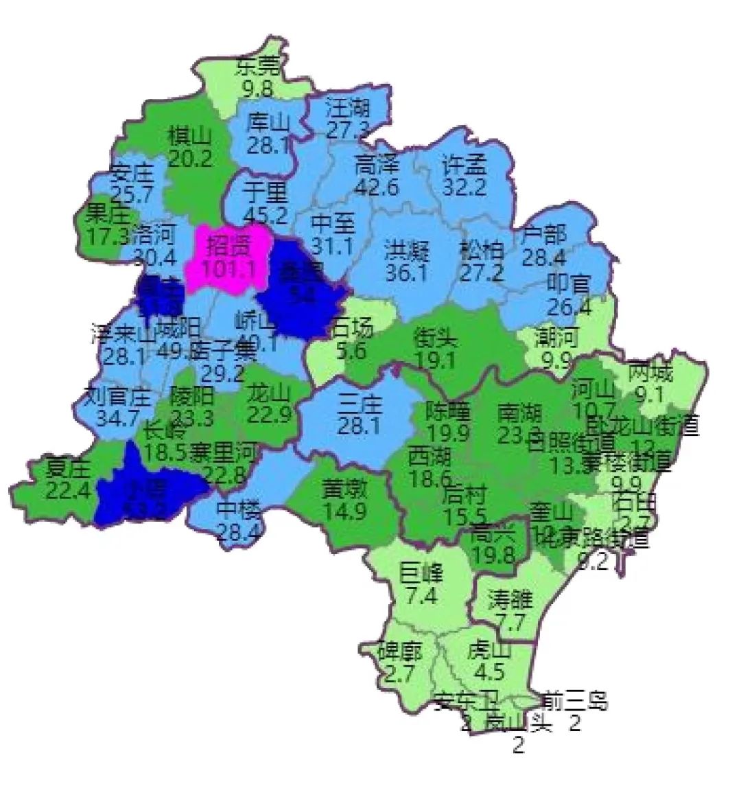 从06月28日12时到06月28日22时,全市的平均降水量为23.2毫米,相当于1.24亿立方米的水。其中,最大降水量为101.1毫米,来自招贤气象观测站。