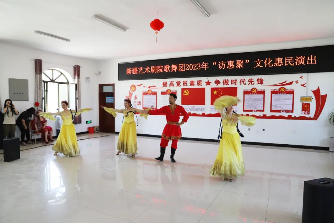 活动当天,走进塔哈其镇查干布呼村村委会,欢快的歌声迎面而来。新疆艺术剧院歌舞团的演员们身着精致的舞蹈服、化着精美的妆容,以优美的舞蹈和惟妙惟肖的表演轮番上演。他们表演了集体舞、独唱、器乐独奏、杂技表演和汉唐舞等节目。观众大呼过瘾,赞不绝口,热爱舞蹈的村民们还为演员伴舞。场上场下气氛热烈,让群众近距离感受到了表演的魅力。
