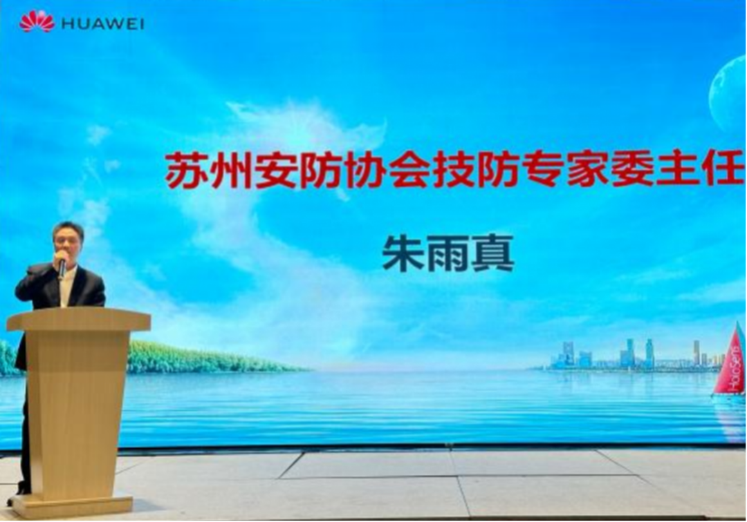 苏州安防协会副秘书长兼技防专家委主任朱雨真代表苏州安防协会对本次活动的举办表示热烈祝贺。他表示,华为作为中国民族品牌,受到全社会的广泛关注和支持。在苏州,华为参与了高空抛物团标的制定,并通过实测展示了其技术实力。华为在安防领域的AI技术应用发挥了独特优势,为社会治安防控做出了巨大贡献。