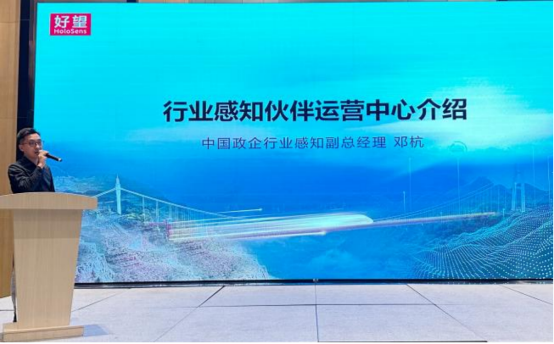 华为中国政企行业感知副总经理邓杭为在座嘉宾详细阐述了“行业感知伙伴运营中心”的概念,并指出其对当地项目落地实施的巨大优势。