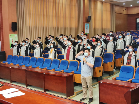 2)班杨宏伟同学先后发言,黄炫境同学表示要以更严格的标准要求自己,不断提高自身素质、完善自我、超越自我,努力成长为优秀的共青团员。老团员代表杨宏伟同学用个人成长进步的经历激励新团员,牢记初心和使命,肩负起时代赋予青年的责任,以脚踏实地的努力书写永不消逝的青春回忆,绘制青春最靓丽的底色。