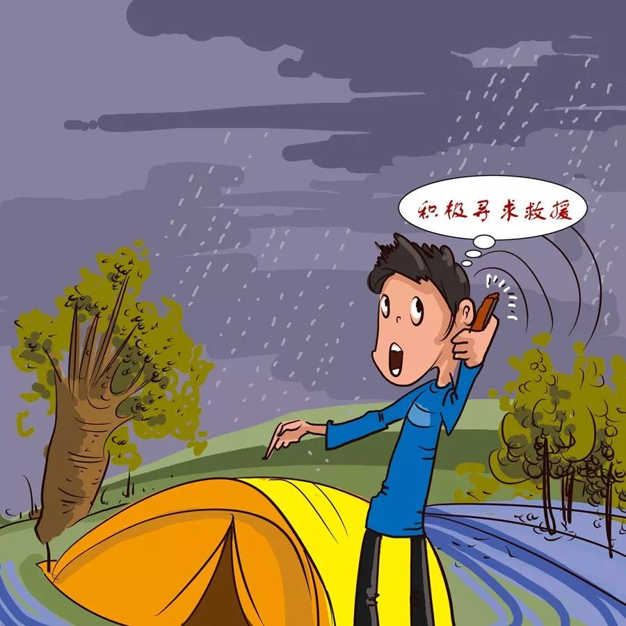 如果你被困,可以利用通信设备联系救援人员,或者使用哨子、鲜艳的衣服等物品发出求救信号。但是,切记不要攀爬带电的电线杆。如果你被困在建筑物内,不要冒险涉水逃生。如果水冲垮了建筑物或漫过了屋顶,也不要冒险逃生。如果你被卷入洪水中,一定要尽可能抓住固定的物体。
