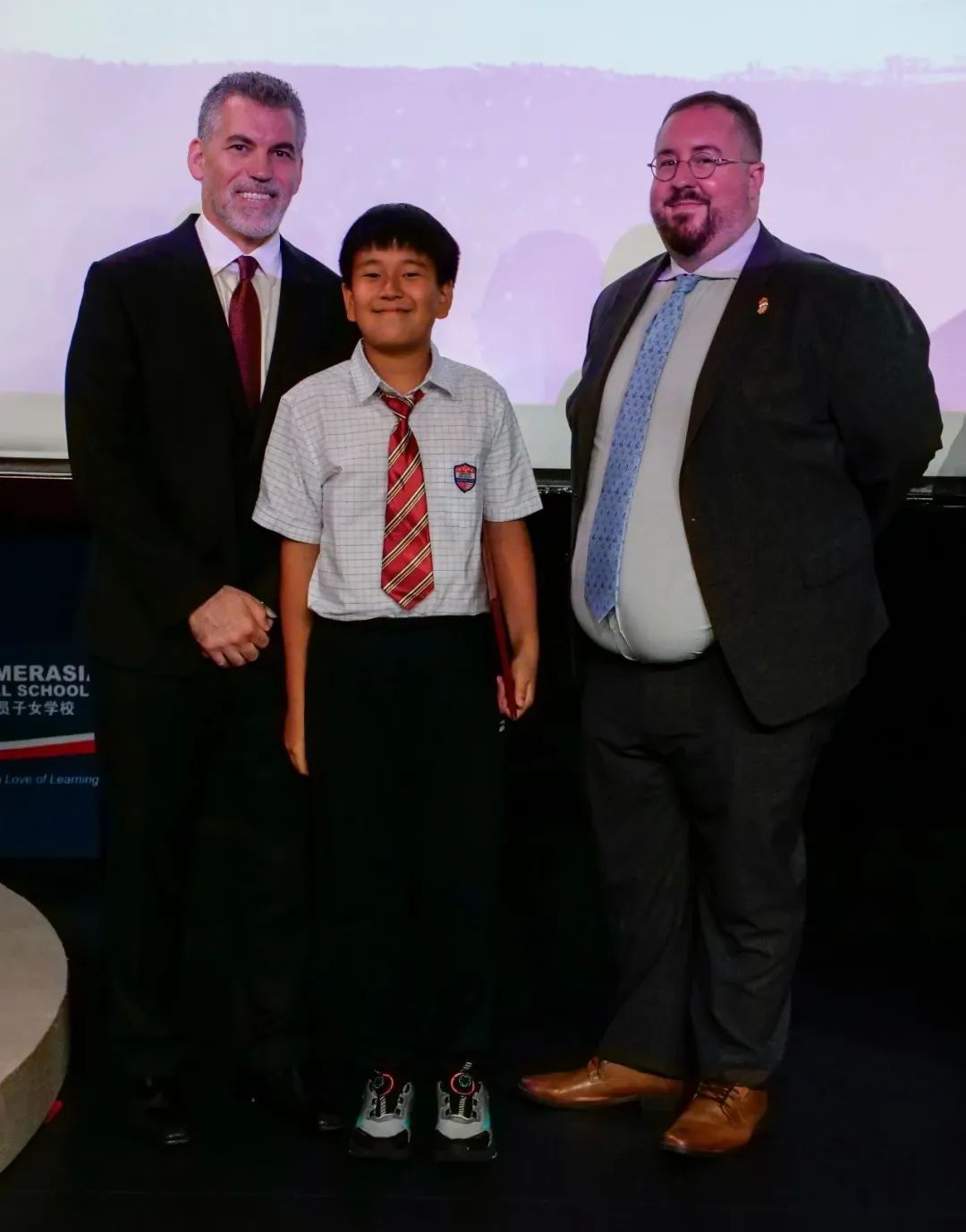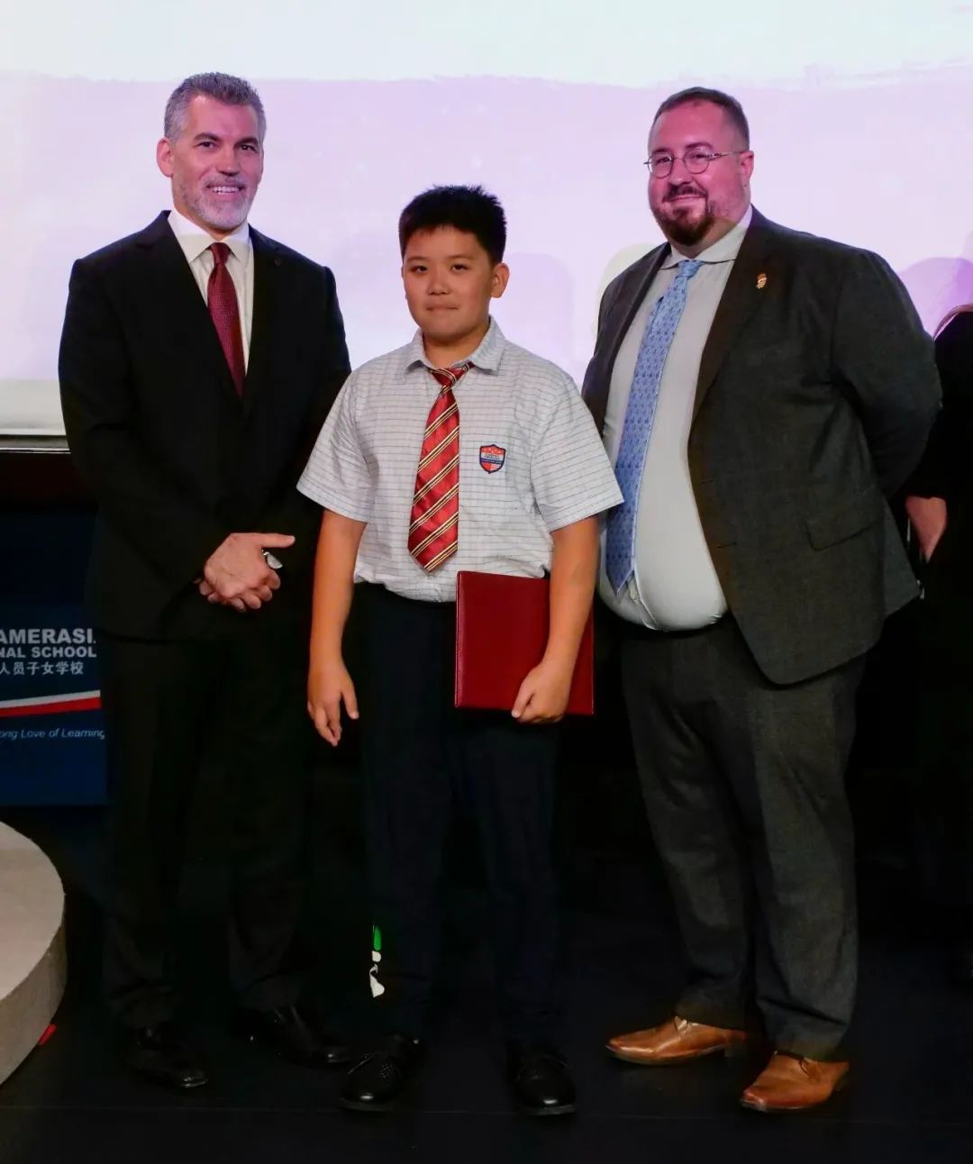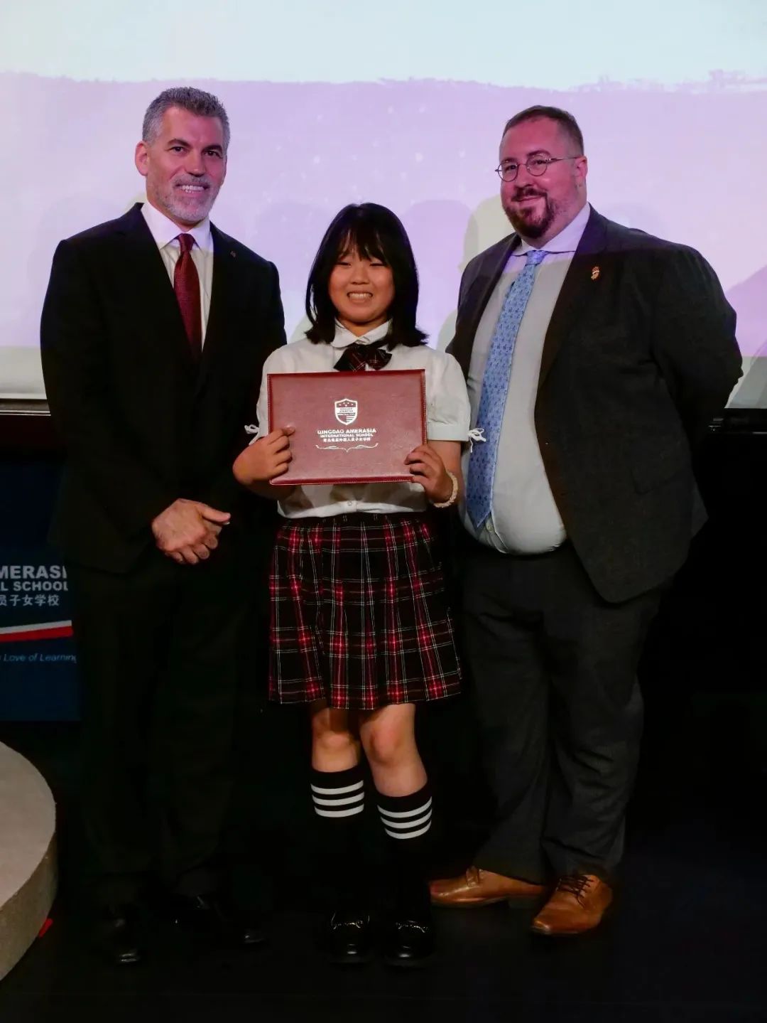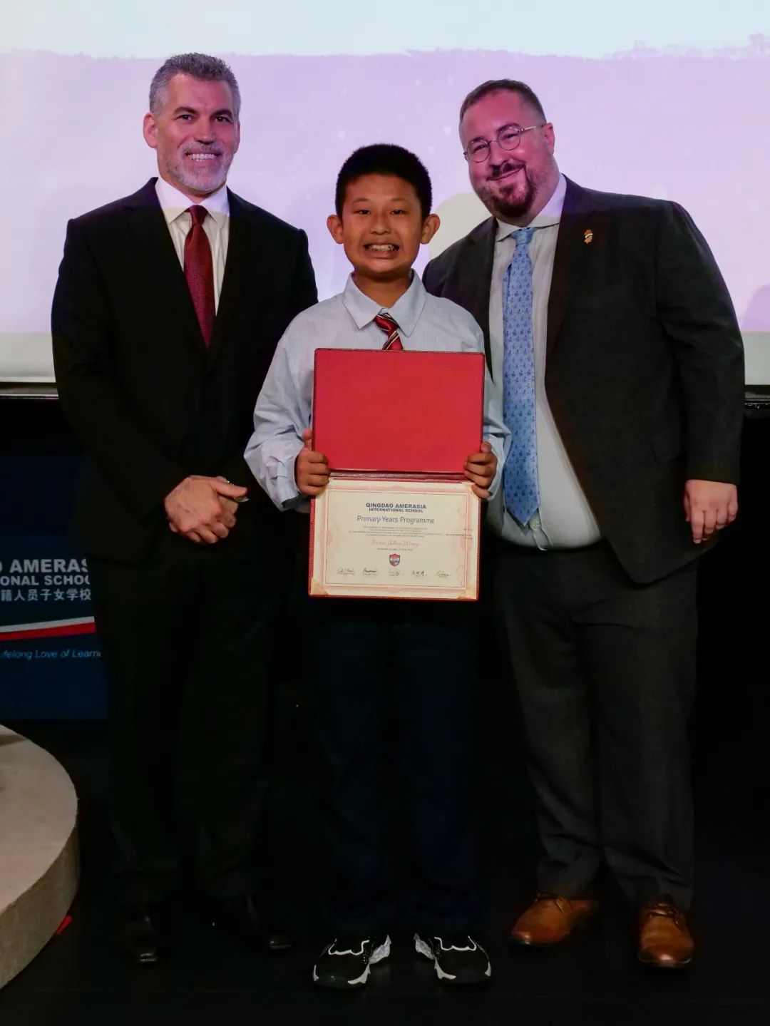 ThePYPGraduation ceremonywasheld, andall25graduatesbravely tookthe stageand expressedthemselvesthroughthoughtfulperformances,artisticdisplays, andriddles.Additionally, therewere movingspeeches byMr.ChrisOkeaIkeakhe, LowerSchoolPrincipal;Mr. KenHall,Grade5 LeadTeacher;andMs.CharlaEsser,ArtsHOD,PYPMusic.Finally, studentsreceived theirdiplomas, andDr.ChrisVicari,Director,andMs. LilyXing, BusinessManager,presentedcommitment awardsto thefamilies ofstudents whohave beenatAmerasia forthe fulldivisionalelementaryprogramGrades1-5.Congratulations tothegraduates, andwelcome toMYP!
