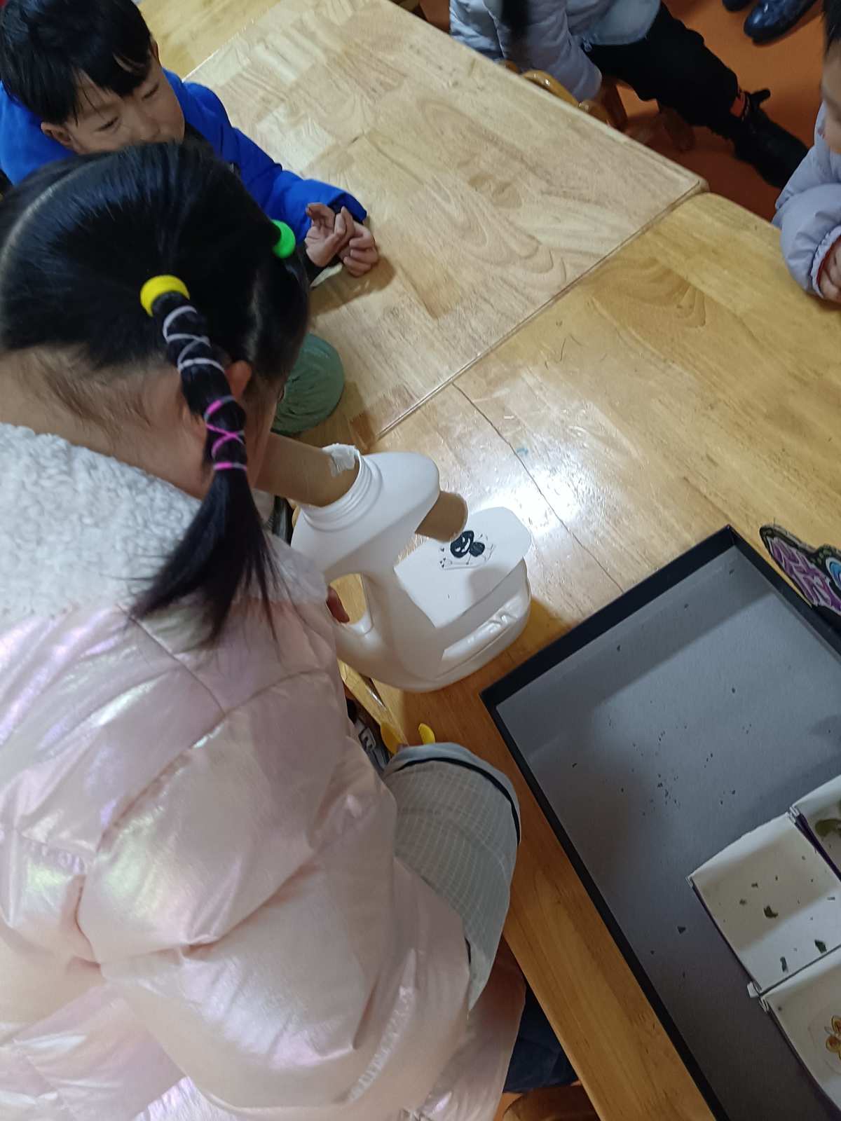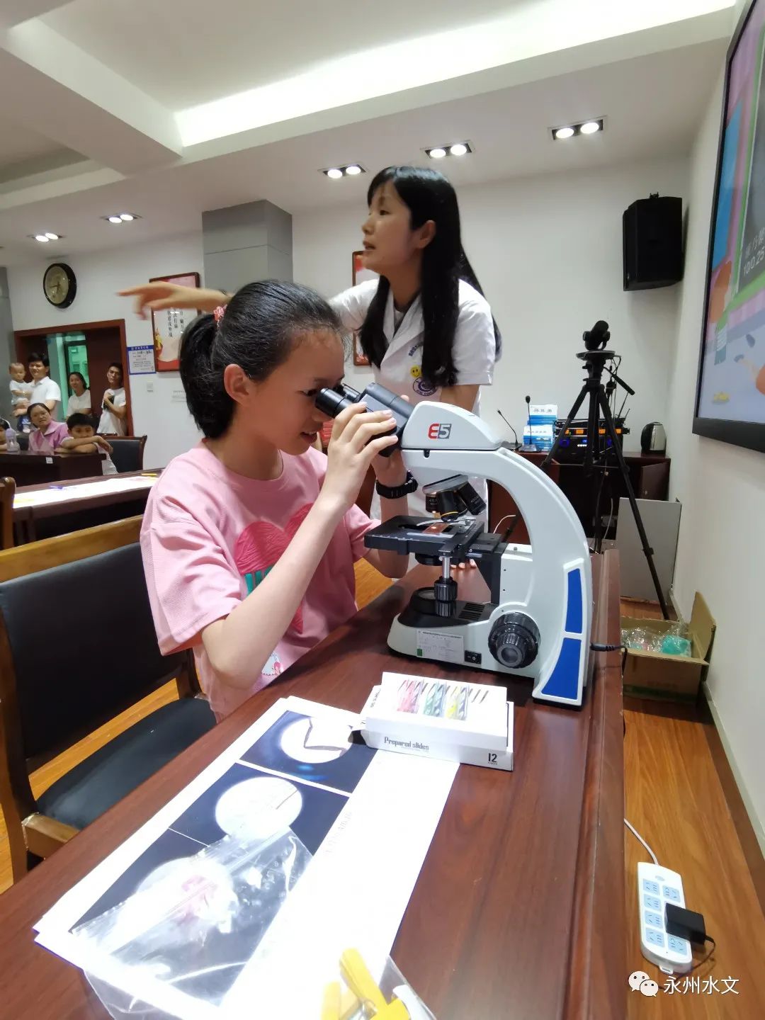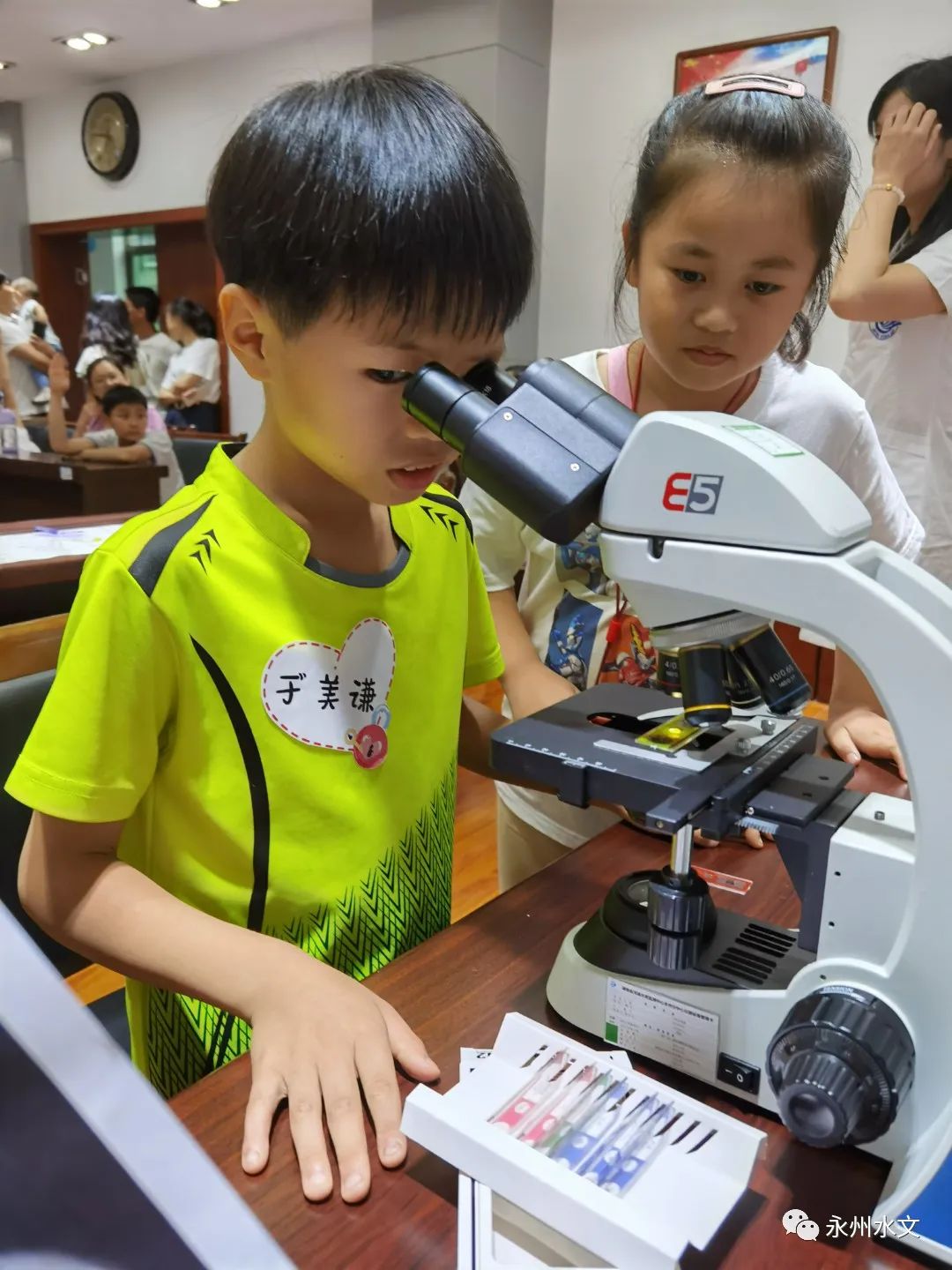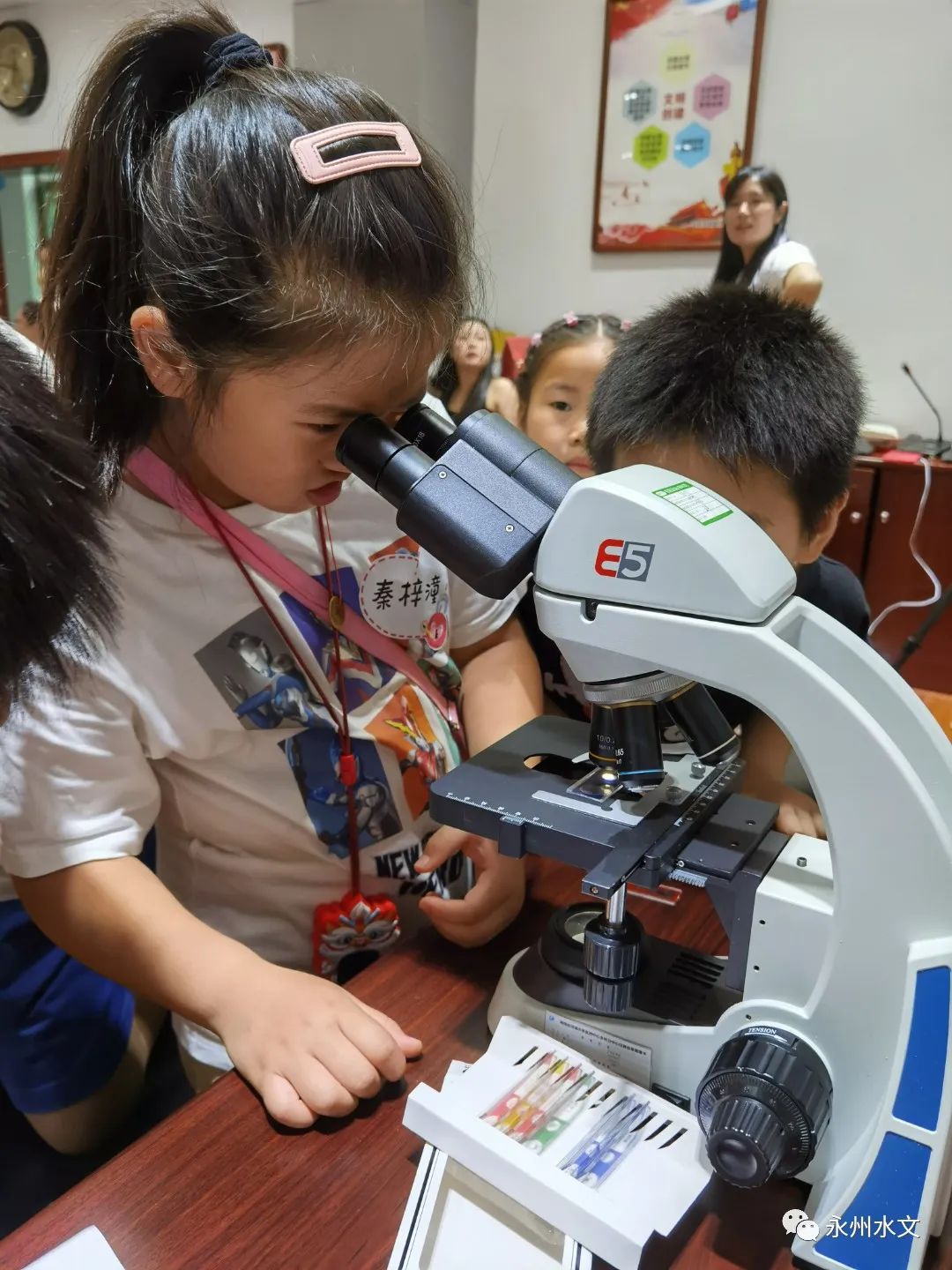 小朋友们使用显微镜,观察了蜜蜂的翅膀、蚂蚁、蚯蚓等动物。