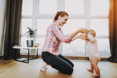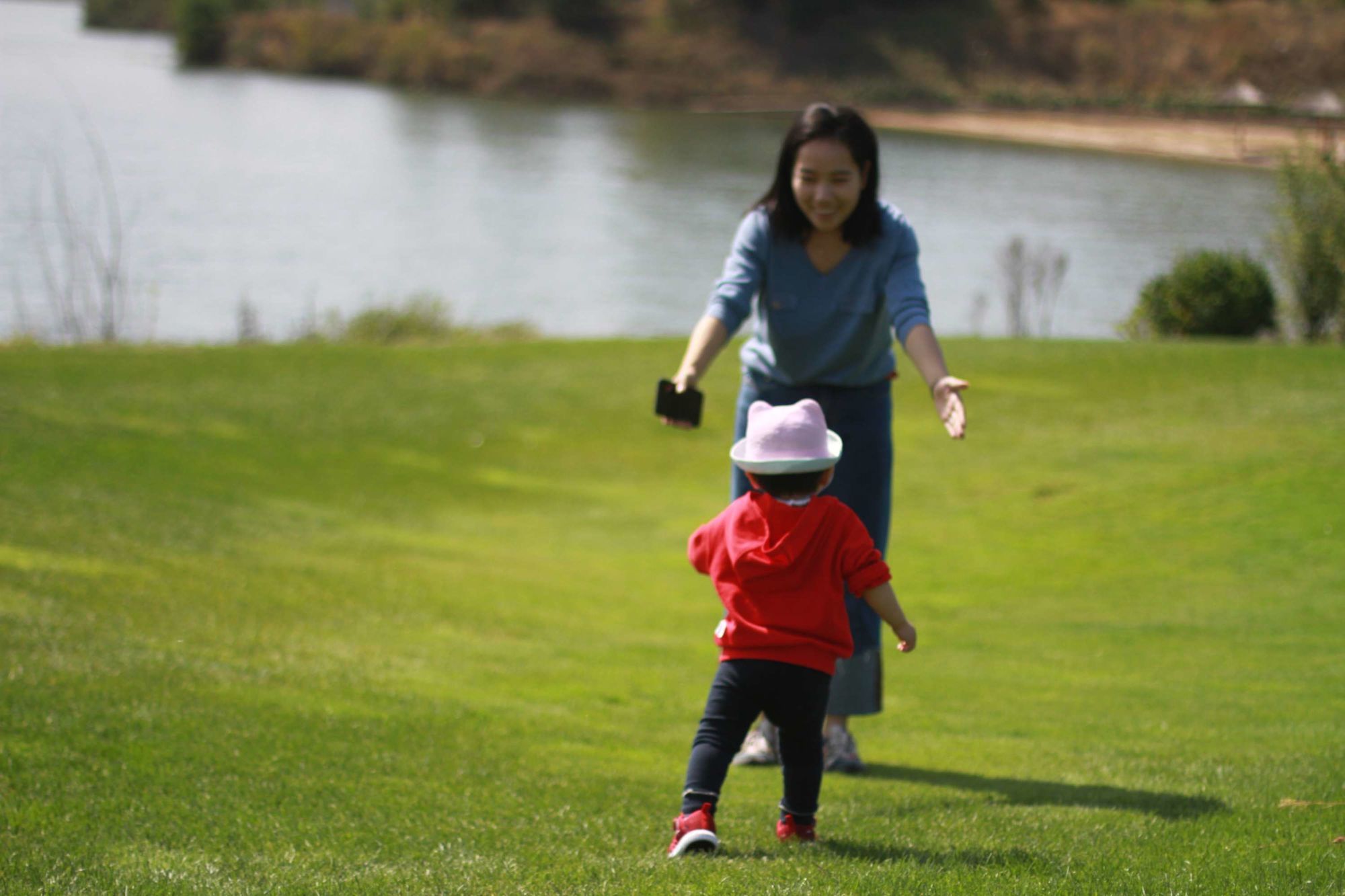 宝宝们在父母的引导下,蹒跚学步,手脚并用地走向父母温暖的怀抱。
