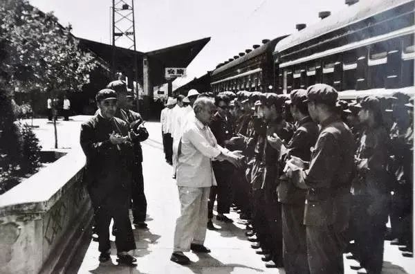 ▲时任安康地委书记张如乾和行署专员魏明生在安康火车站向救灾的解放军指战员表示感谢。