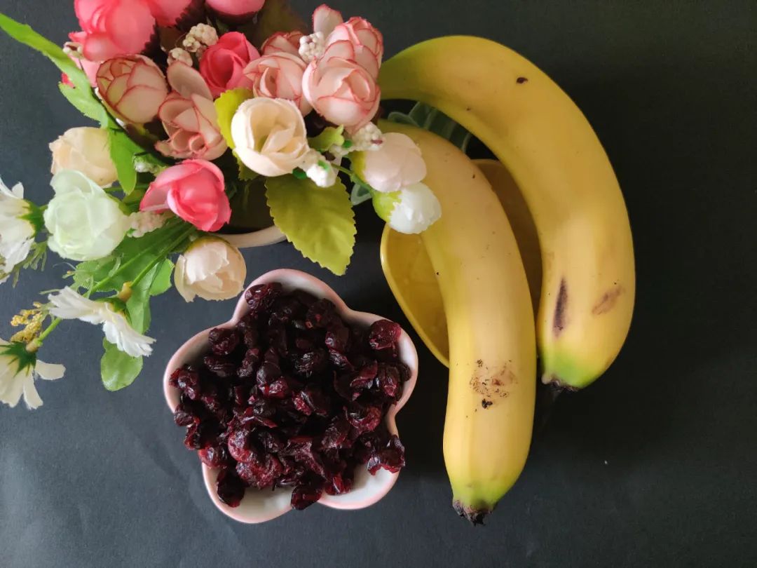 水果:香蕉和蔓越莓干。