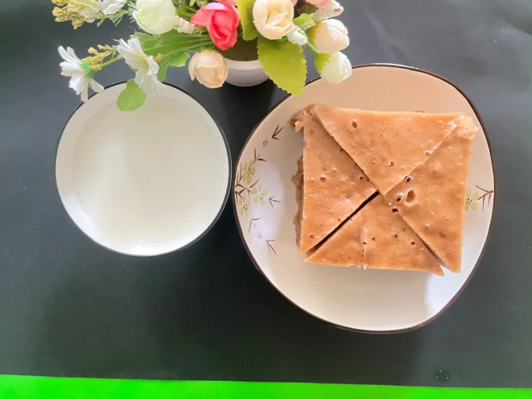 早餐时,品尝燕塘鲜奶和红糖糕。
