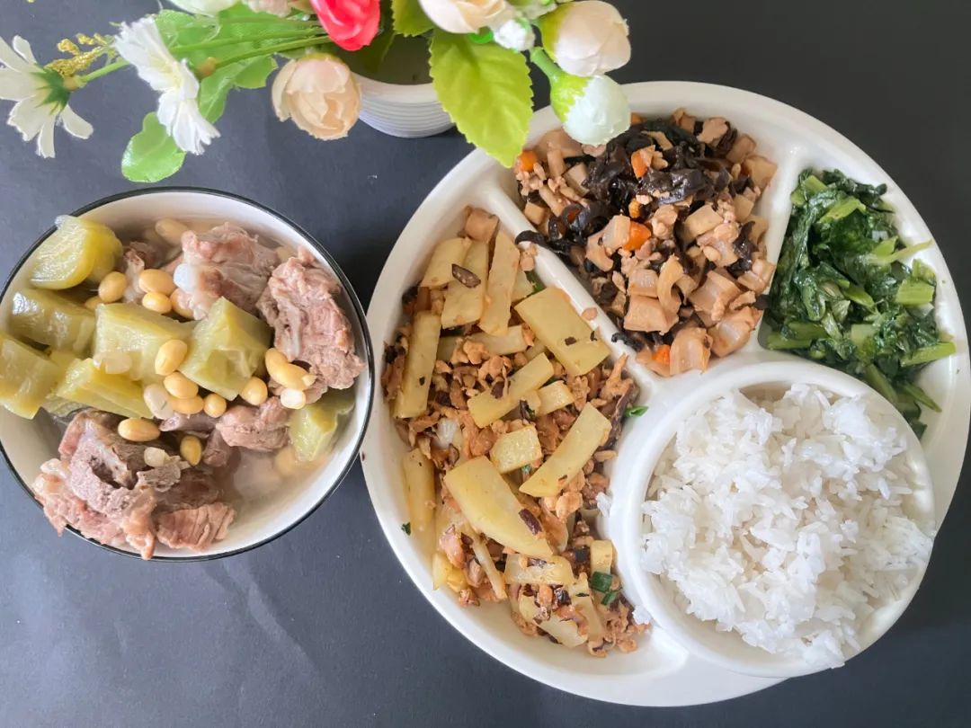 午餐时,我们享用了香菇土豆炖鸡的米饭。