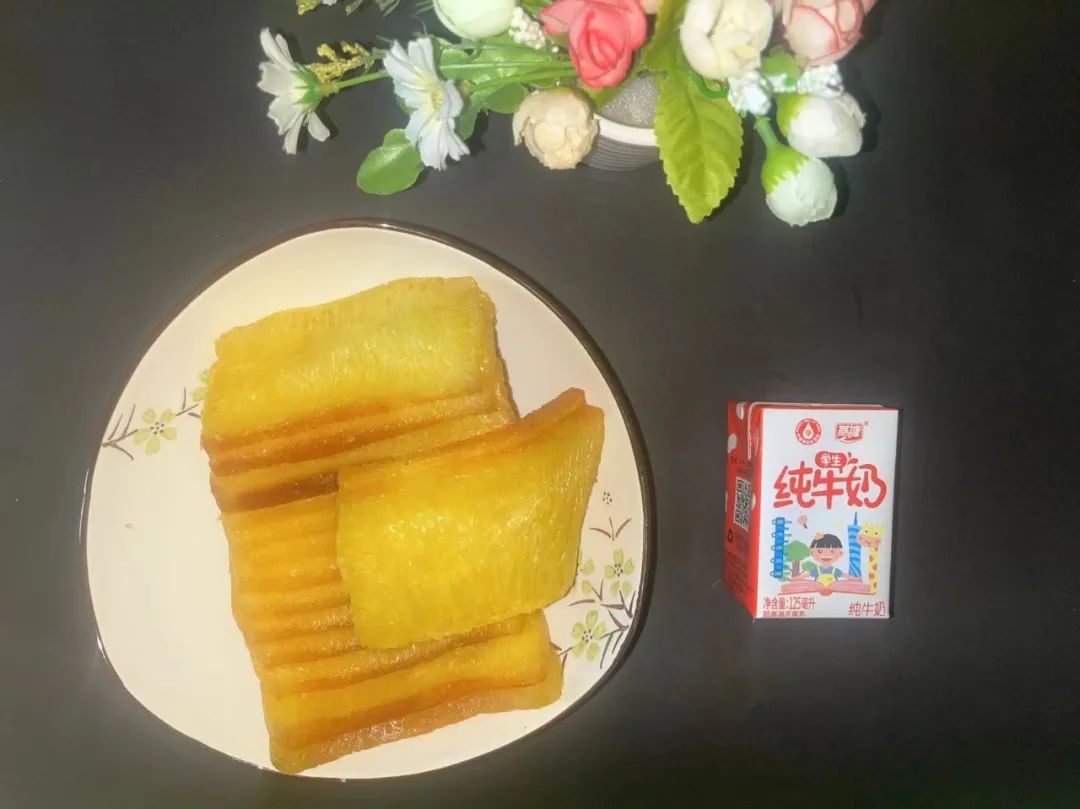 午餐:燕塘牛奶和椰香黄金糕。