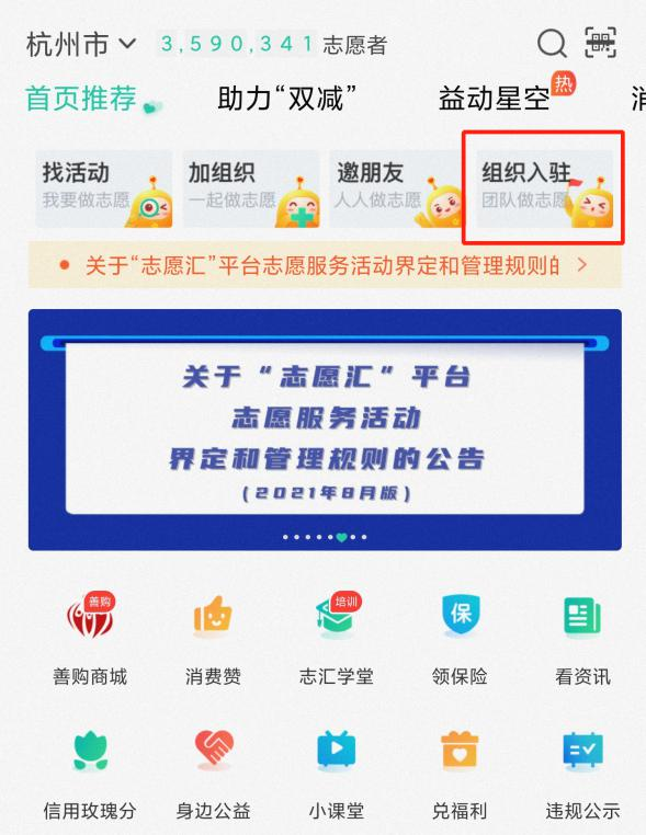 2.“志愿汇”组织入驻