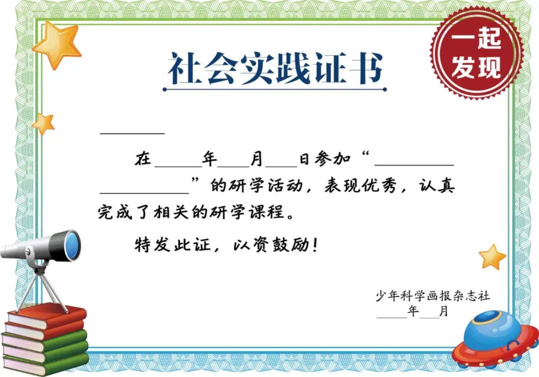 2.所有参与本次活动的小学员都将获得少年科学画报杂志社认证的社会实践证书,这将给孩子带来满满的仪式感。