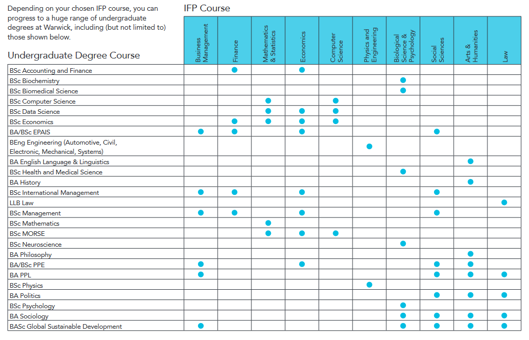 学生可以根据本科阶段的学习计划,选择预科期间的学科方向。对于希望衔接华威本科课程的同学,通常可以获得来自华威本科相关专业的有条件录取通知书(条件一般是预科结业成绩和语言成绩)。