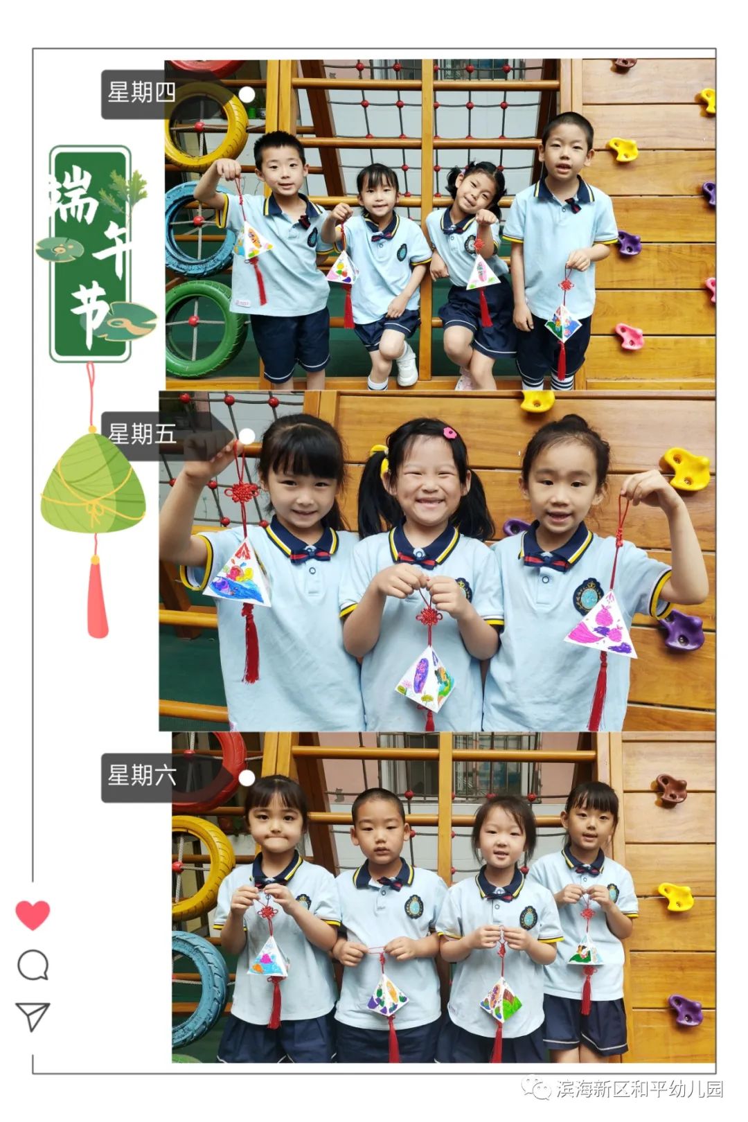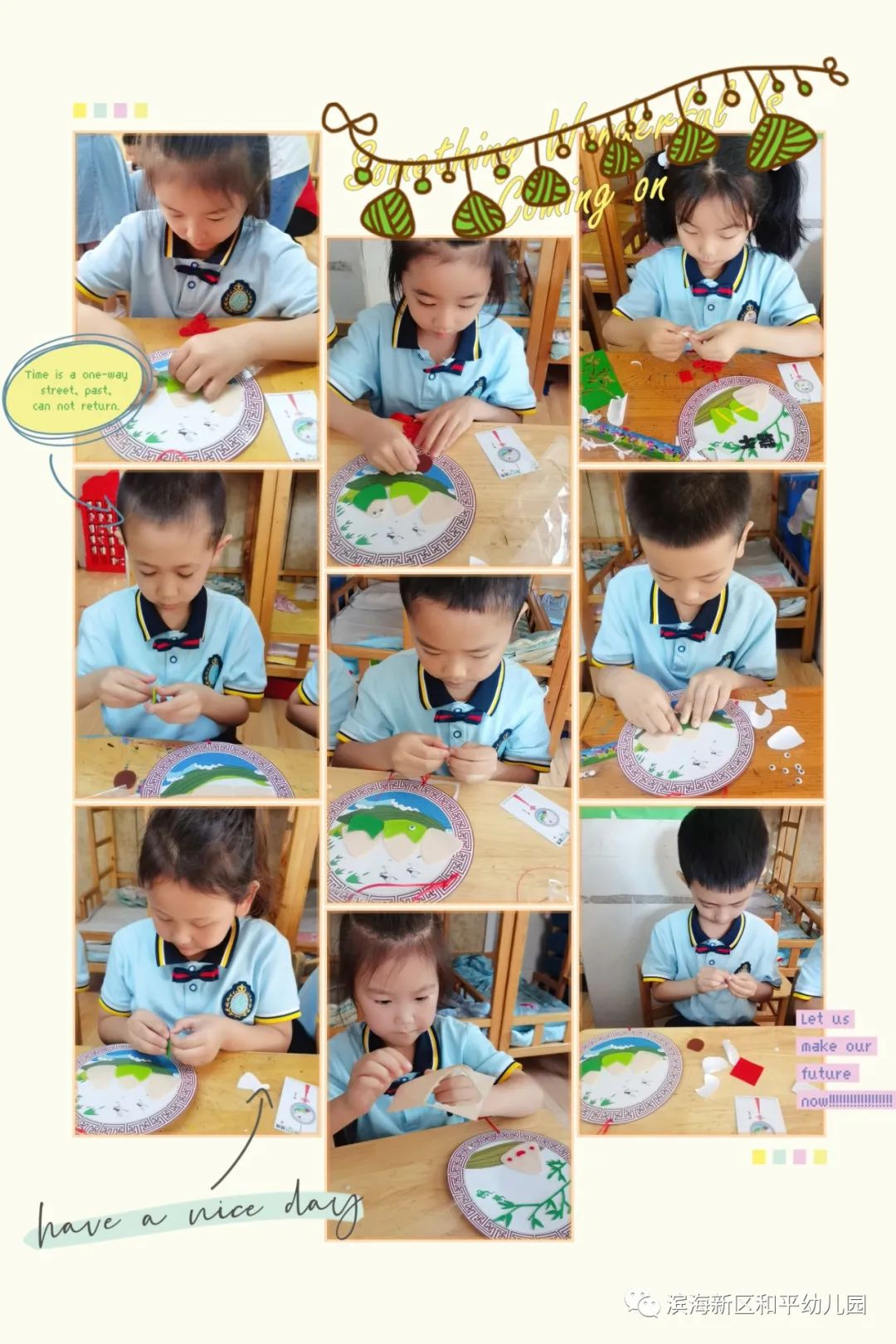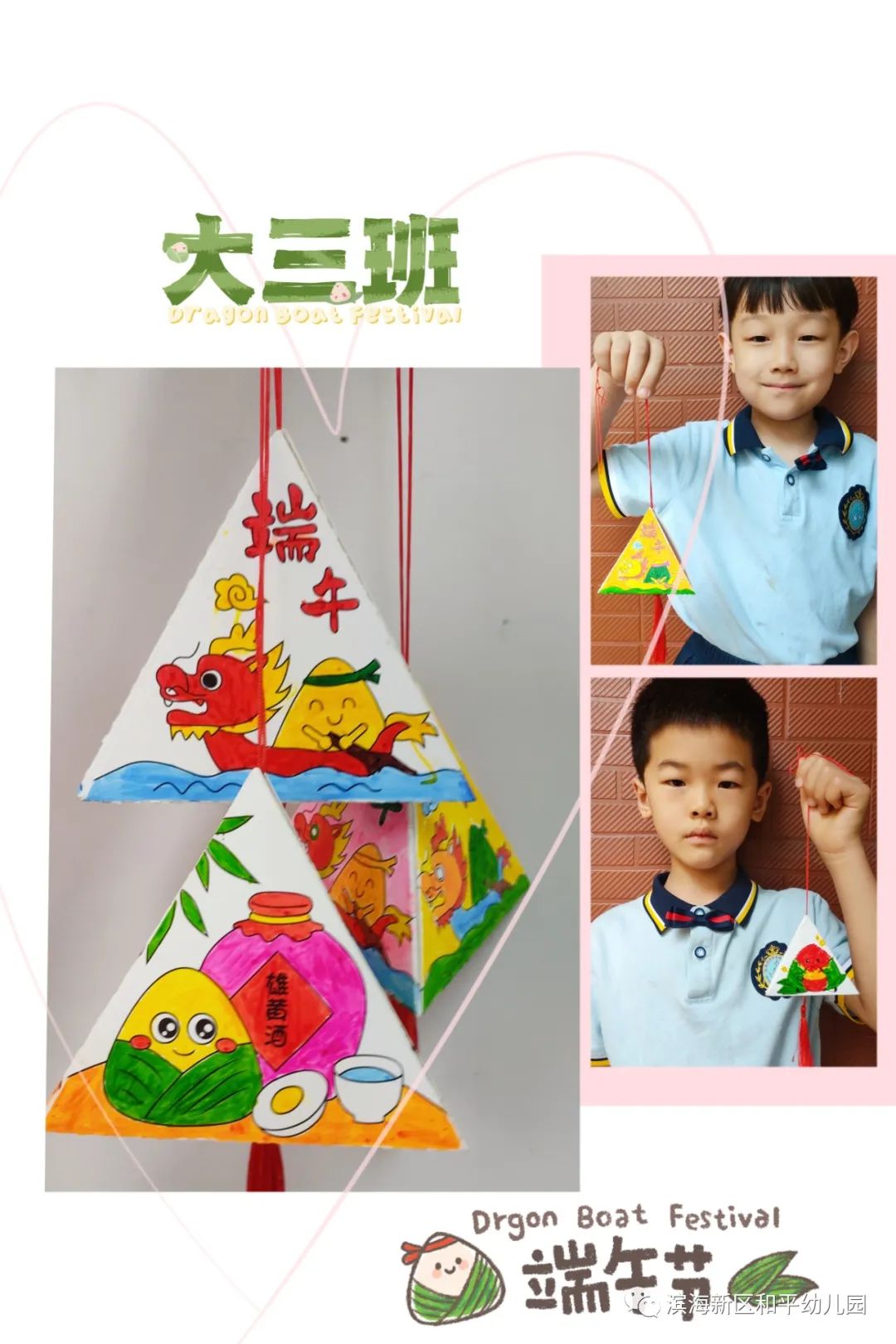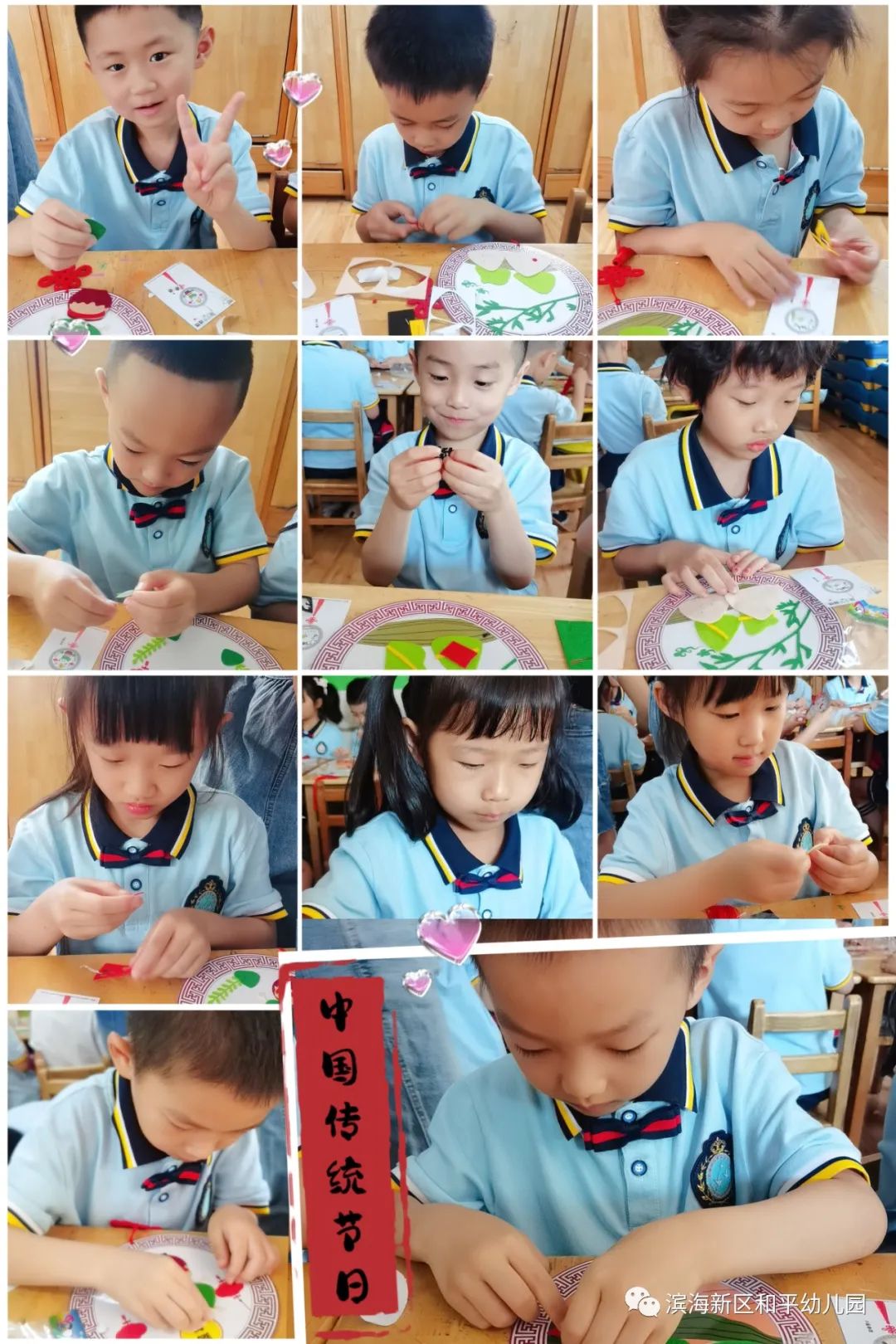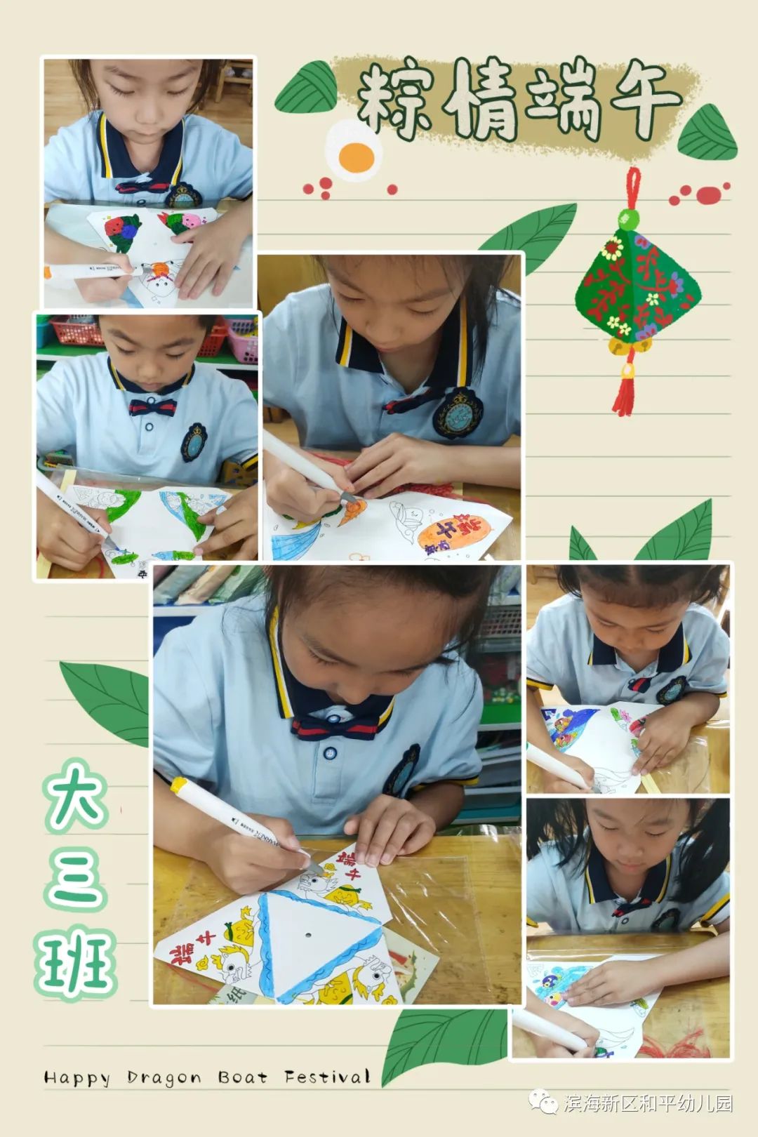 在了解了端午节的来历和传统习俗后,孩子们积极参与其中,亲手制作了一份纪念意义重大的节日手工。