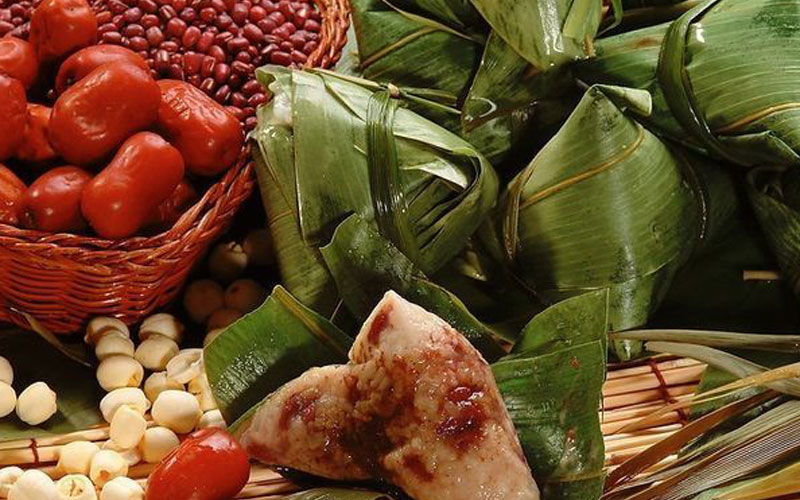 端午节清晨,每家每户都会吃粽子来纪念屈原。通常情况下,人们会在前一天将粽子包好,然后在夜间煮熟。早晨享用。粽子的主要材料是河塘边盛产的嫩芦苇叶,也有用竹叶的,统称为粽叶。传统的粽子呈三角形,人们通常根据内瓤来命名,如包糯米的叫米粽,掺有小豆的叫小豆粽,掺有红枣的叫枣粽。枣粽的谐音为“早中”,因此吃枣粽的人最多,寓意着读书的孩子能够早中状元。过去,读书人参加科举考试的当天早晨,都要吃枣粽。直到现在,中学和大学入学考试日的早晨,家长也会为考生准备枣粽。