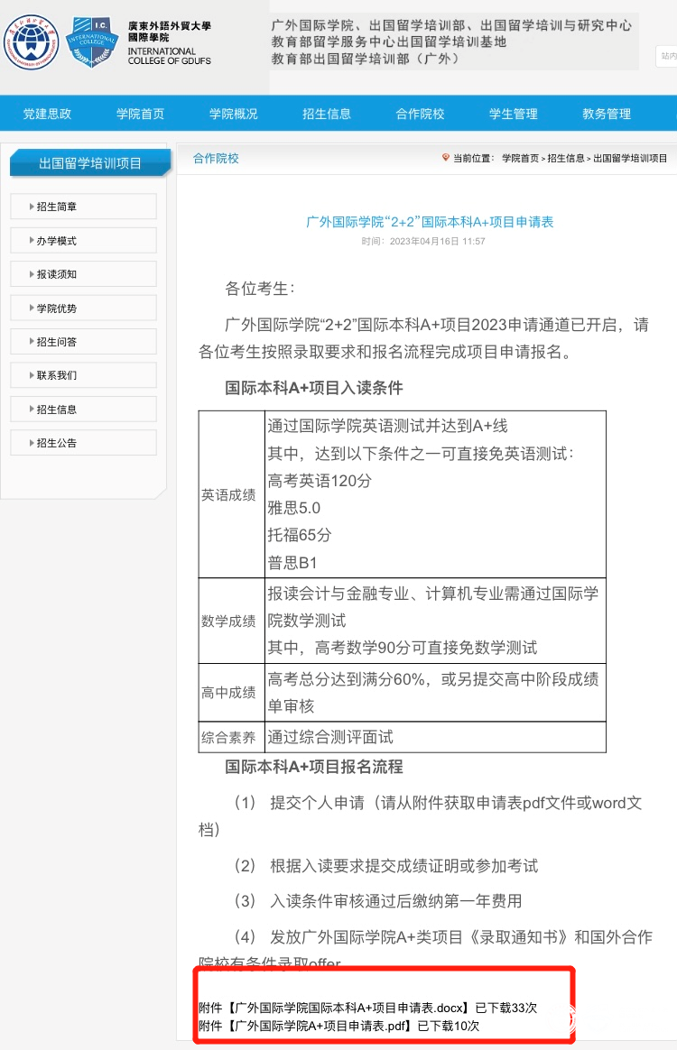 1.请填写A+项目申请表,并将其发送/邮寄至国际学院招生办公室。