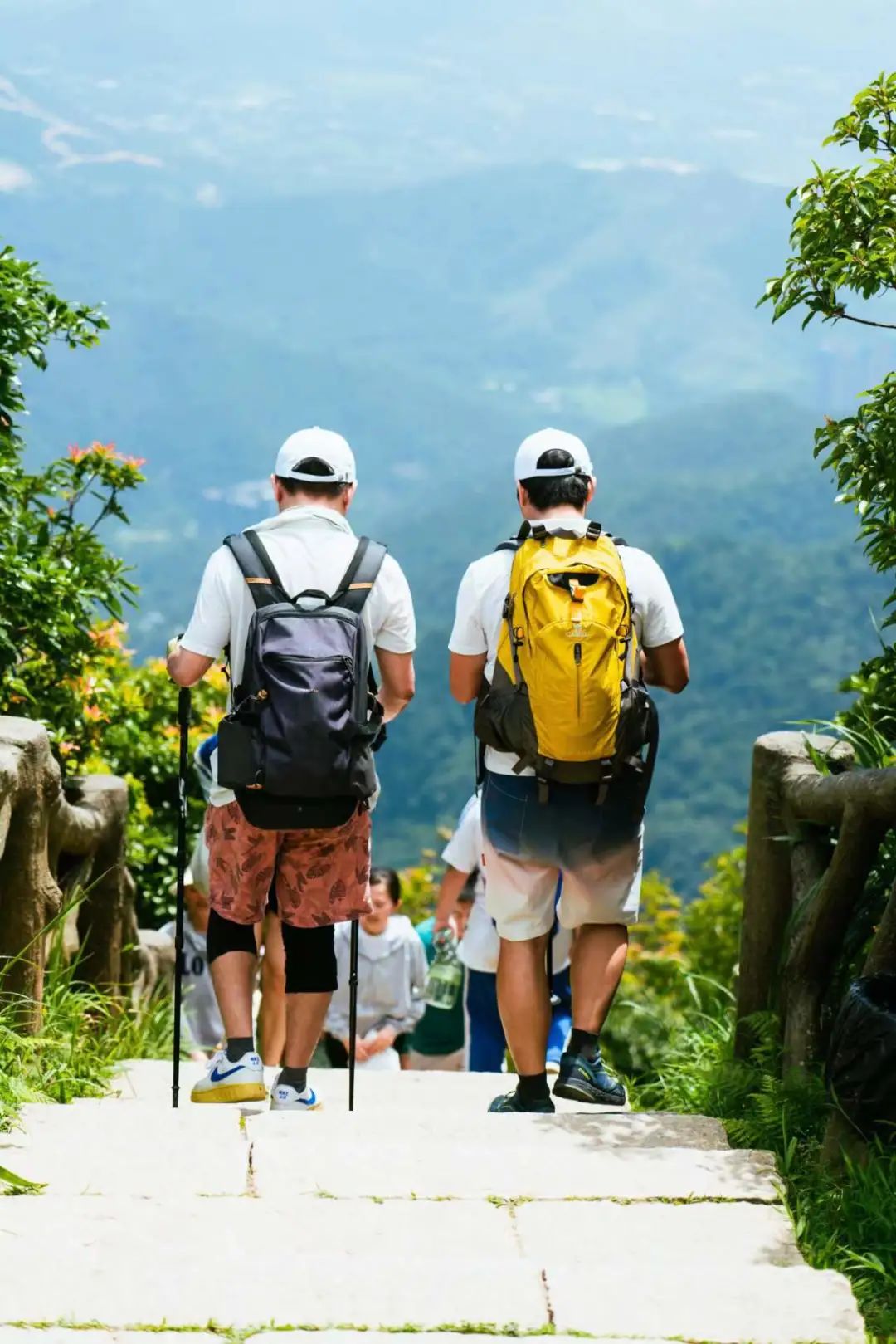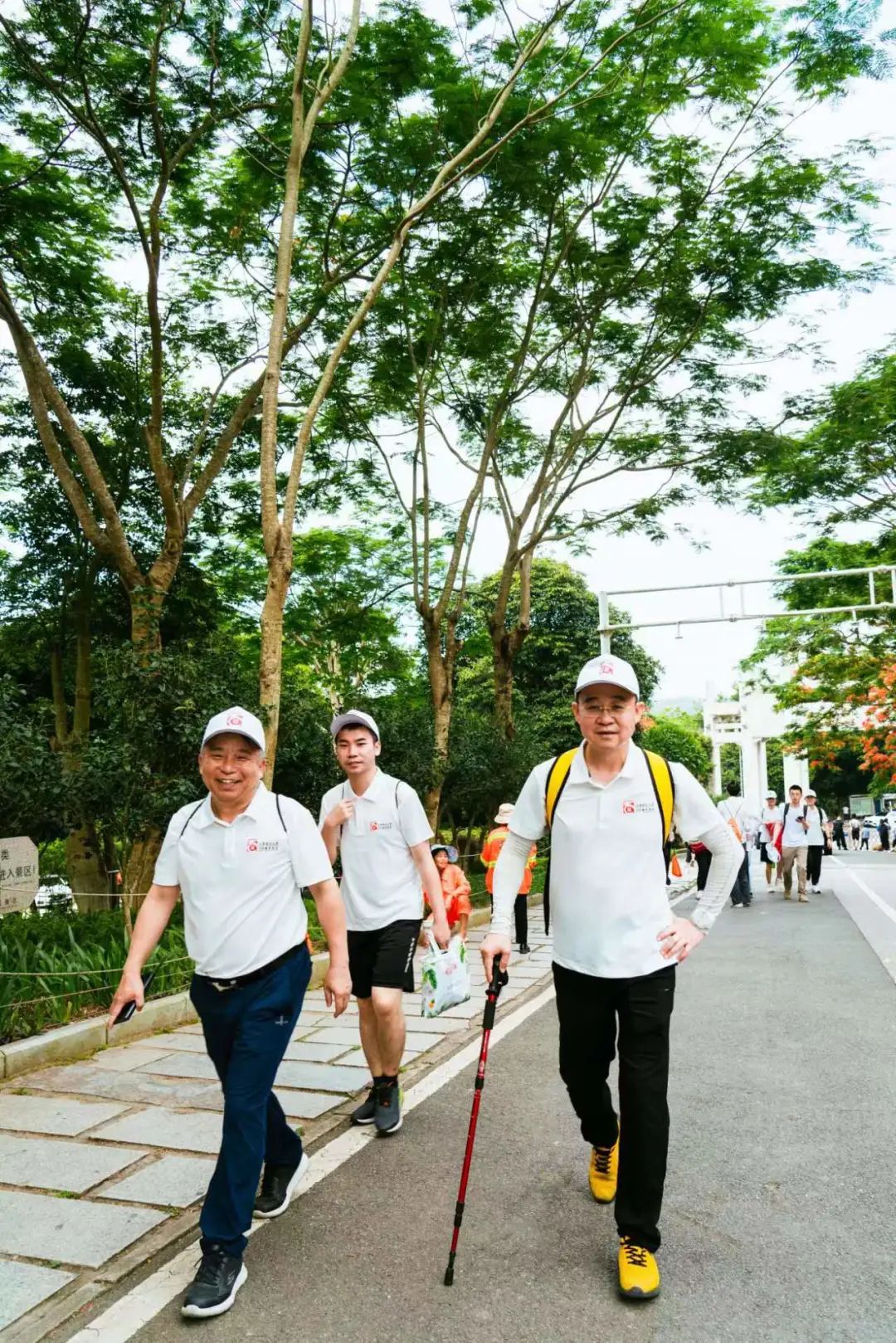 登山沿途,我们随处可见校旗在风中飘扬。校友们谈笑风生,兴致勃勃,互帮互助,鼓劲加油。登山队伍沿着蜿蜒曲折的山路,百名校友宛如一条长龙向山顶攀登。途中,我们偶遇了“梧桐烟雨”这一难得的奇观。翻滚的云雾在山峰缭绕,时而轻烟淡抹,时而浓雾成盖,给人一种神妙新奇的感觉。这一奇观曾被评为深圳市新八景之一,只有在特定气候条件下才能形成。