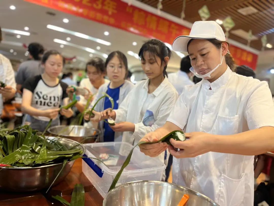 2023年6月16日下午,江南大学举办了一场名为“粽情端午相约江南”的端午节主题活动。活动地点在梁溪苑餐厅一楼。此次活动不仅展示了端午艾草香囊、特色主题书签和吉祥五彩绳线,还举办了包粽子趣味赛。