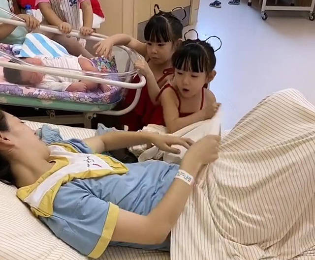 大女儿在旁边轻声地叫着“妈妈”,渴望牵着妈妈的手。然而,妈妈并没有回应她。