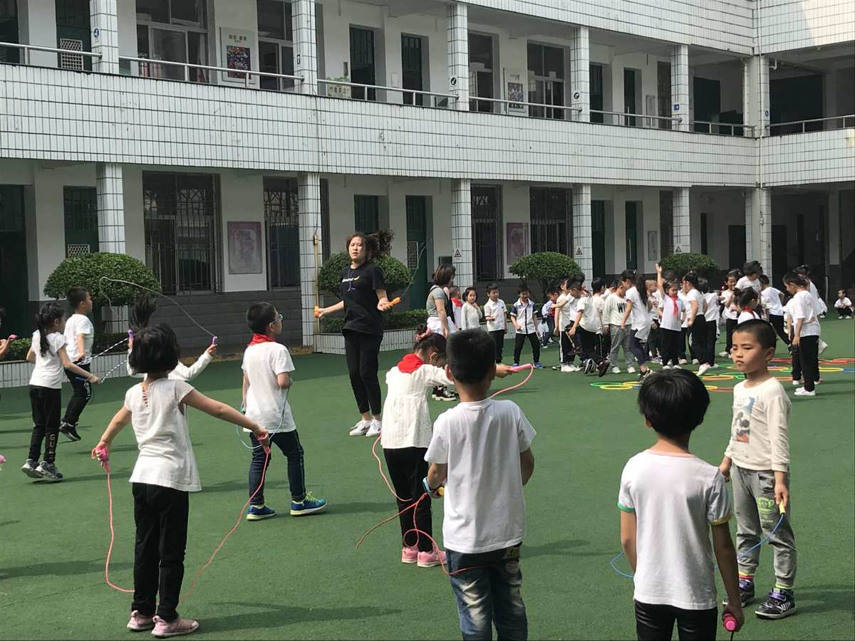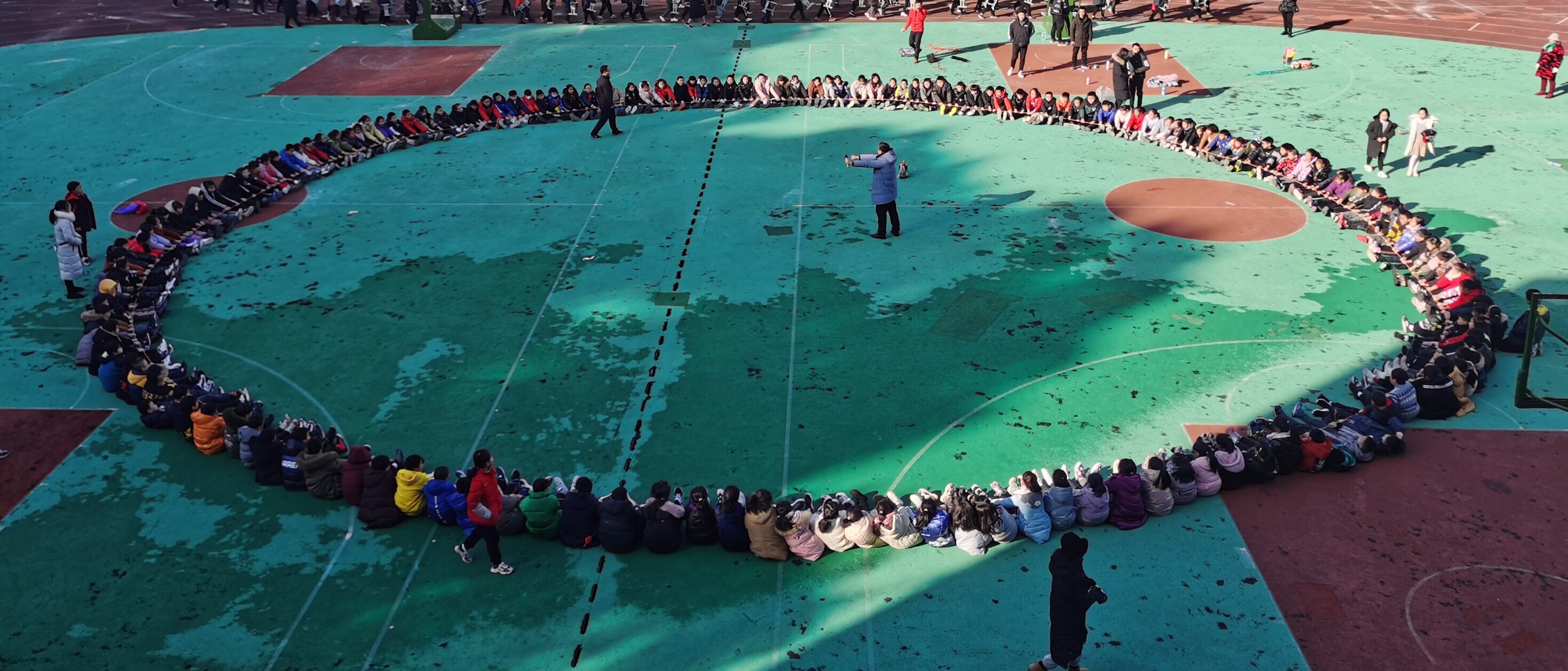 社工小徐让同学们手持动力绳,坐下并将绳结朝同一个方向舞动。这并不是一项轻松的任务,因为任何人偷懒或方法不当都会导致绳子摇晃和不稳定。因此,要求每位同学集中精力,在社工小徐铿锵有力的指挥声中,同学们挥舞着手臂,绳圈有节奏地运动着,点燃了团队的激情,展现了团队合作的力量。