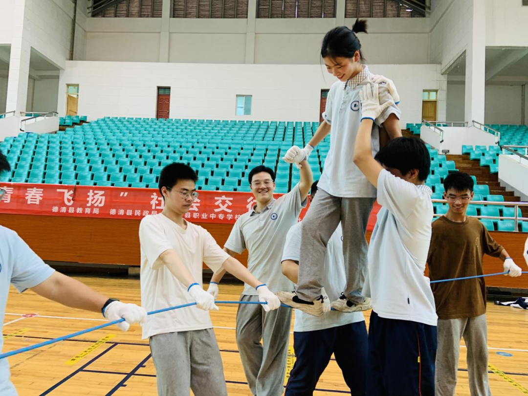 近日,德清县教育局、德清县民政局和德清职业中专社工站在德清职业中专举办了一场名为“青春飞扬”的社会交往团队辅导。星辰社工带领高二两个班级的同学们,用一根绳子成功地串联起了集体的凝聚力和荣誉感。