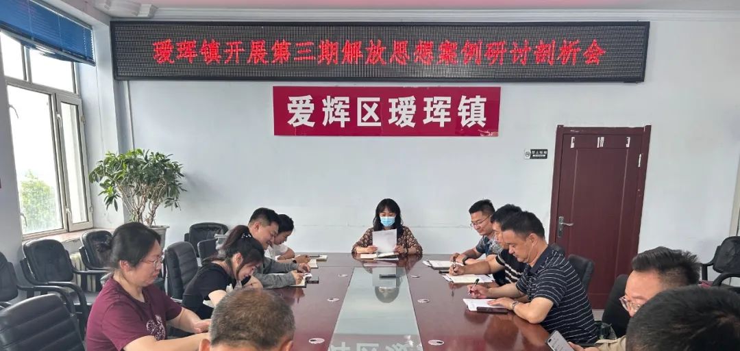 瑷珲镇举行了一次解放思想的案例剖析会议,旨在深入学习相关典型案例,并围绕强化“改革创新意识、市场意识、营商环境意识、晋位争先意识、质量效率意识”等五个方面开展专题研讨。在会议上,领导班子成员进行了研讨发言,其他干部职员也进行了书面交流。