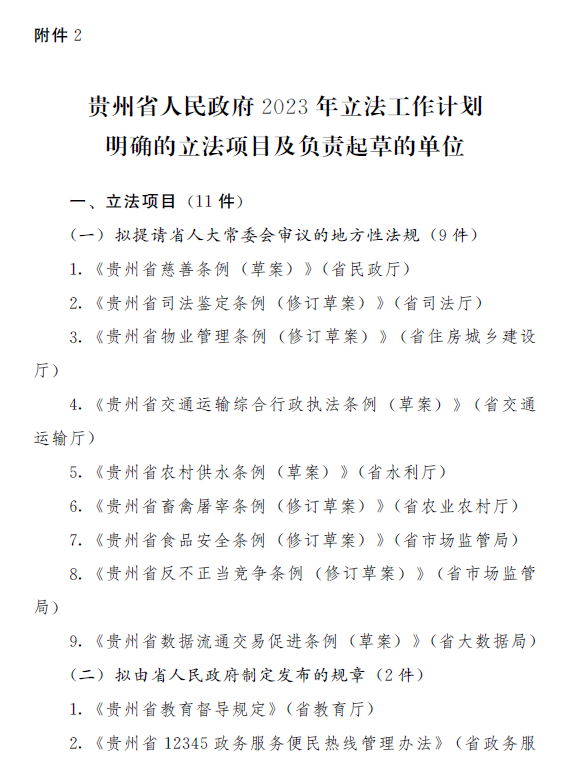 贵州省人民政府办公厅发布了一份规划,名为《贵州省人民政府2023—2027年立法规划》。