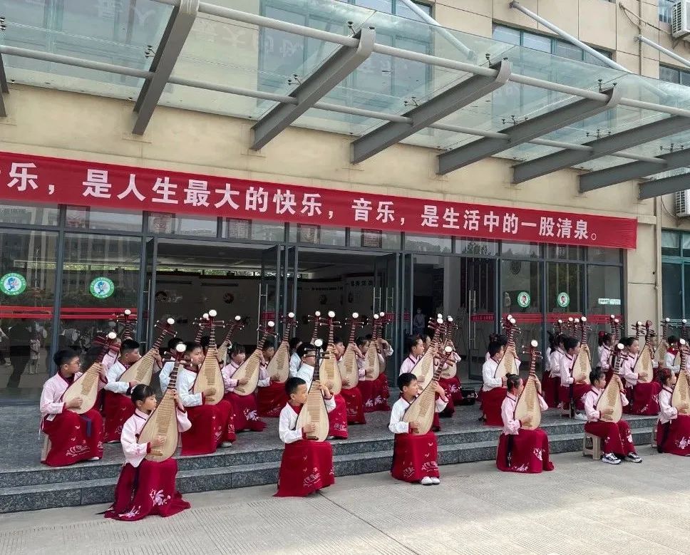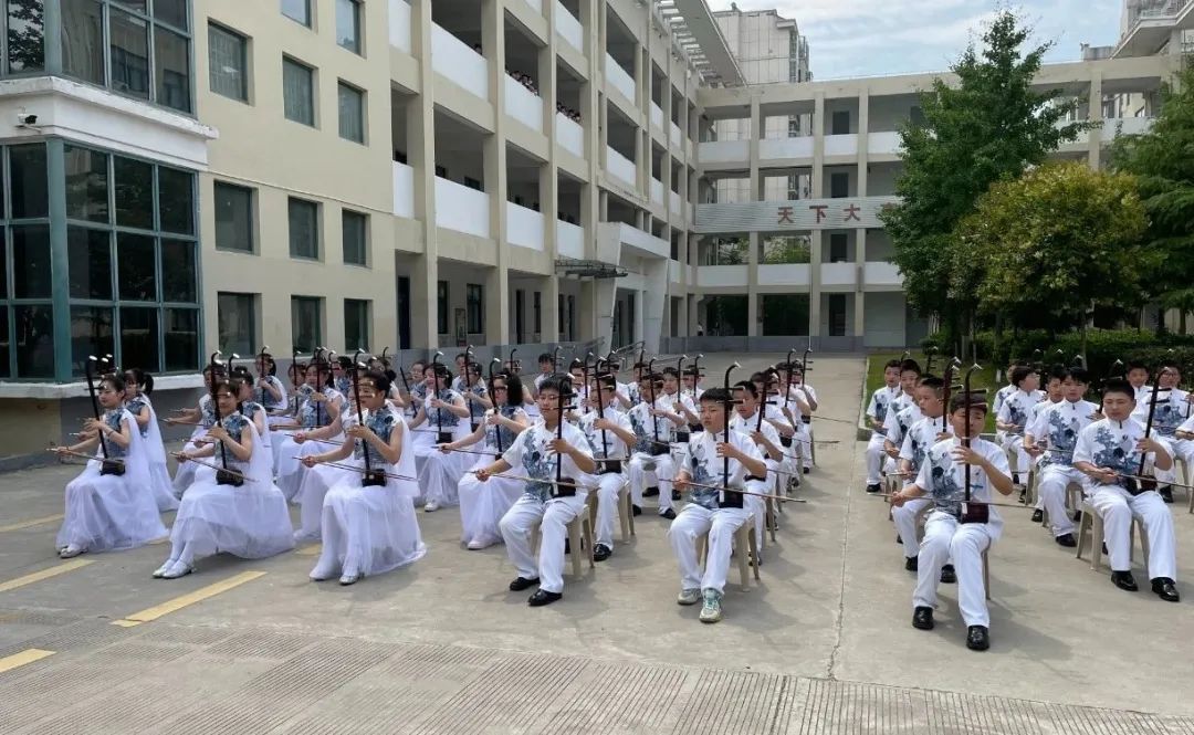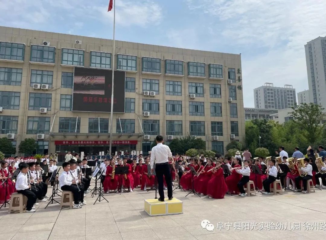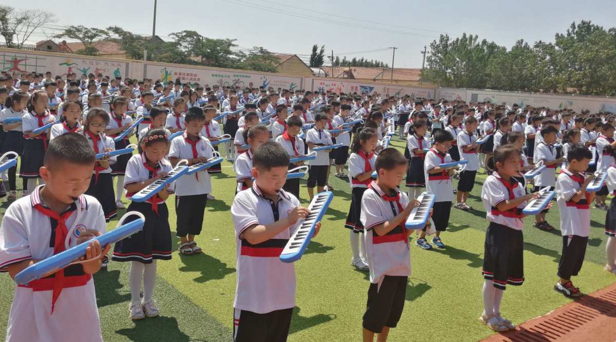 在小学老师的热情的带领下,我们来到了宽阔美丽的操场上,观看了精彩的乐器演奏表演。