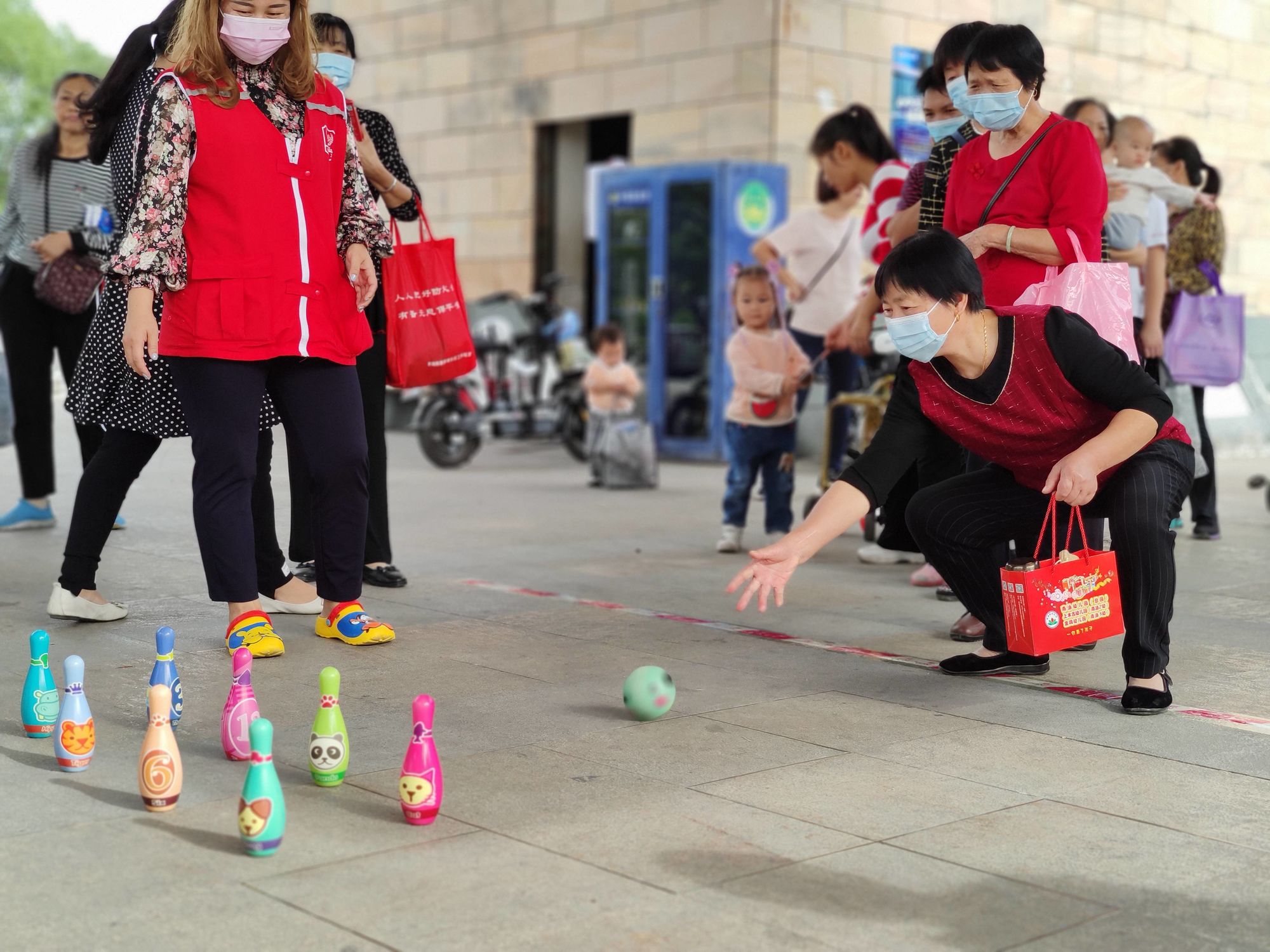 文化社区党总支充分发挥了“党建引领”的作用。大党委成员单位县委宣传部、文旅局、市监局的党员志愿者们在新时代文明实践站变身“摊主”,在体育馆支起“运动小摊”。现场有“一吹到底、大眼瞪小眼、区BA投篮、趣味保龄球、神投手”等摊位,还有丰厚的小礼品。每个摊位都由一名党员志愿者负责。