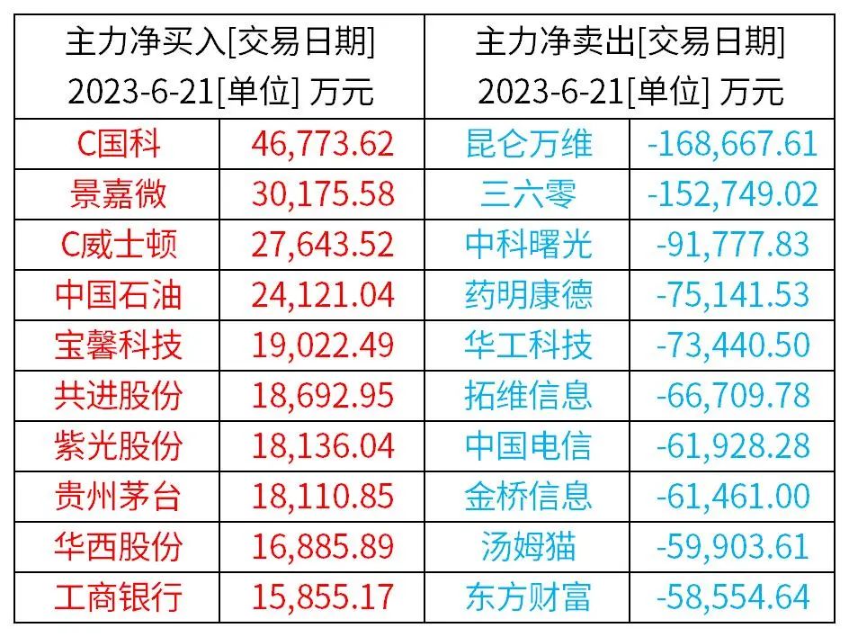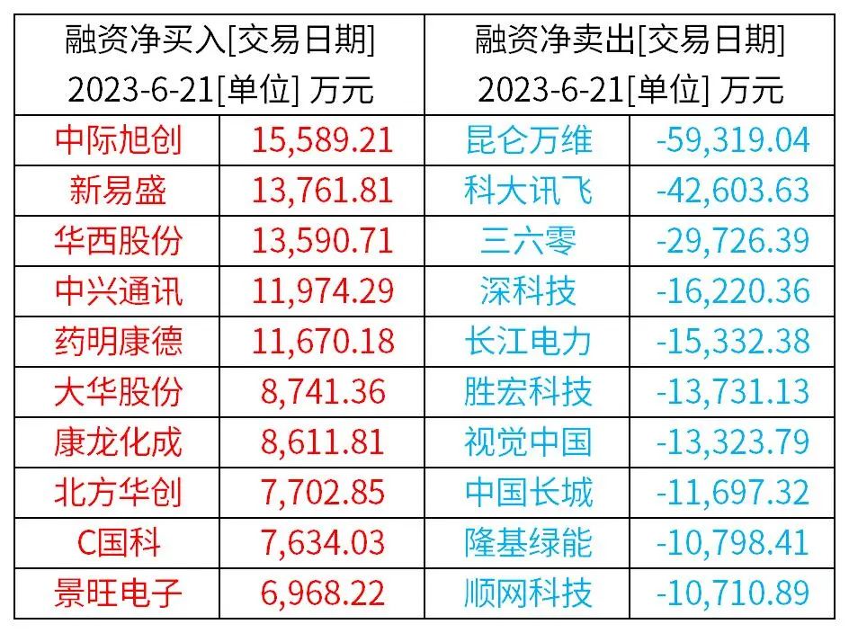 前一交易日,融资融券净买入和净卖出的前10名个股。