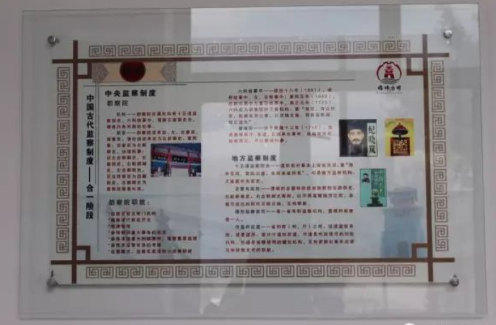 这条长廊充分利用了办公环境,设计了图文并茂、寓教于理的廉政文化长廊。它包含27幅宣传展板,以时间为轴,展示了中国古代监察制度、中国近代监察制度和中国纪检监察制度的发展历史。它让墙壁“说话”,成为“课堂”,营造了浓郁的“敬廉崇洁”氛围,时刻提醒广大党员干部廉洁自律。
