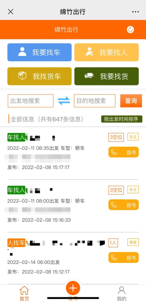 无论是人找车,还是车找人,都可以使用顺风拼车。