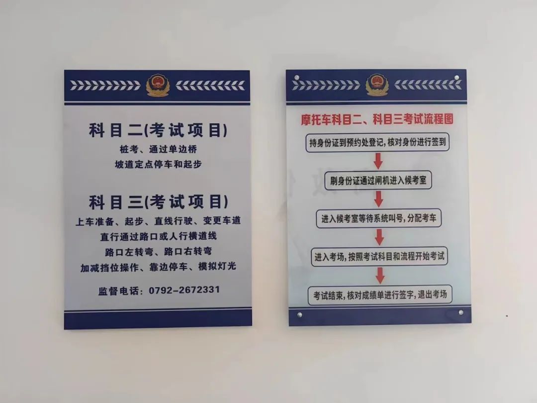 考场内设有科目二和科目三的考试项目。