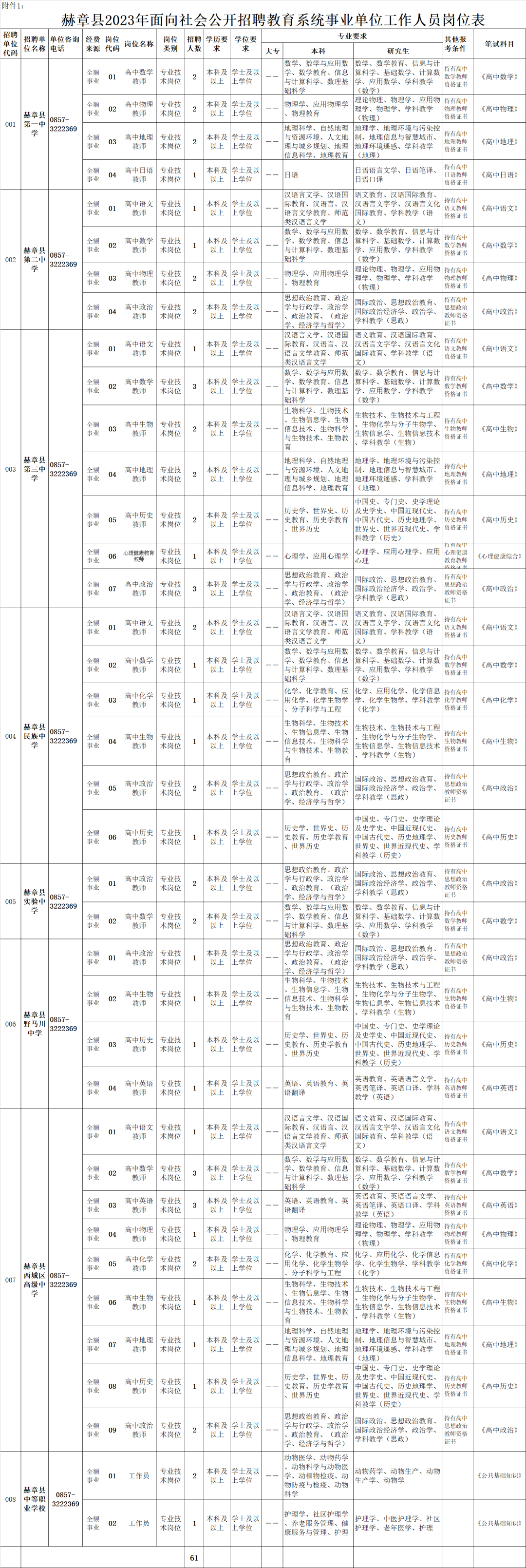 (三)笔试科目:具体信息请参见《赫章县2023年面向社会公开招聘教育系统事业单位工作人员岗位表》(附件1)。