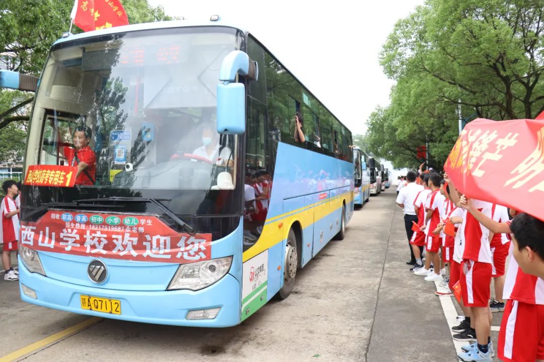 每年的高考送行仪式已经成为西山学校的一大特色。送别场面热烈而感人,长长的校道两旁高举着“高考必胜、亮剑西山、西山必胜、金榜题名”等励志标语,人们一边齐声高喊:“学长,加油!学姐,你一定可以的!”。也许只是一次关切的眼神,一句简单的鼓励,却能让学生们在迈进考场的步伐中更加坚定和自信。同时,这也充分展示了西山师生众志成城、团结奋战、勇于超越的优良传统和作风。