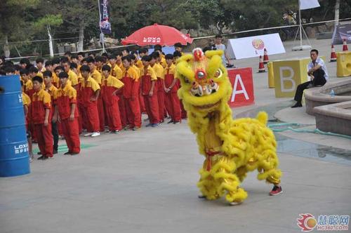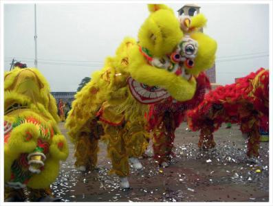 龙狮引领道路,锣鼓助阵,警车护送。