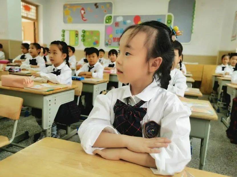 ▲坐在哥哥姐姐的桌椅上,模仿他们的坐姿和举手发言,认真聆听,仿佛自己已经成为了一名小学生。