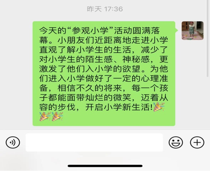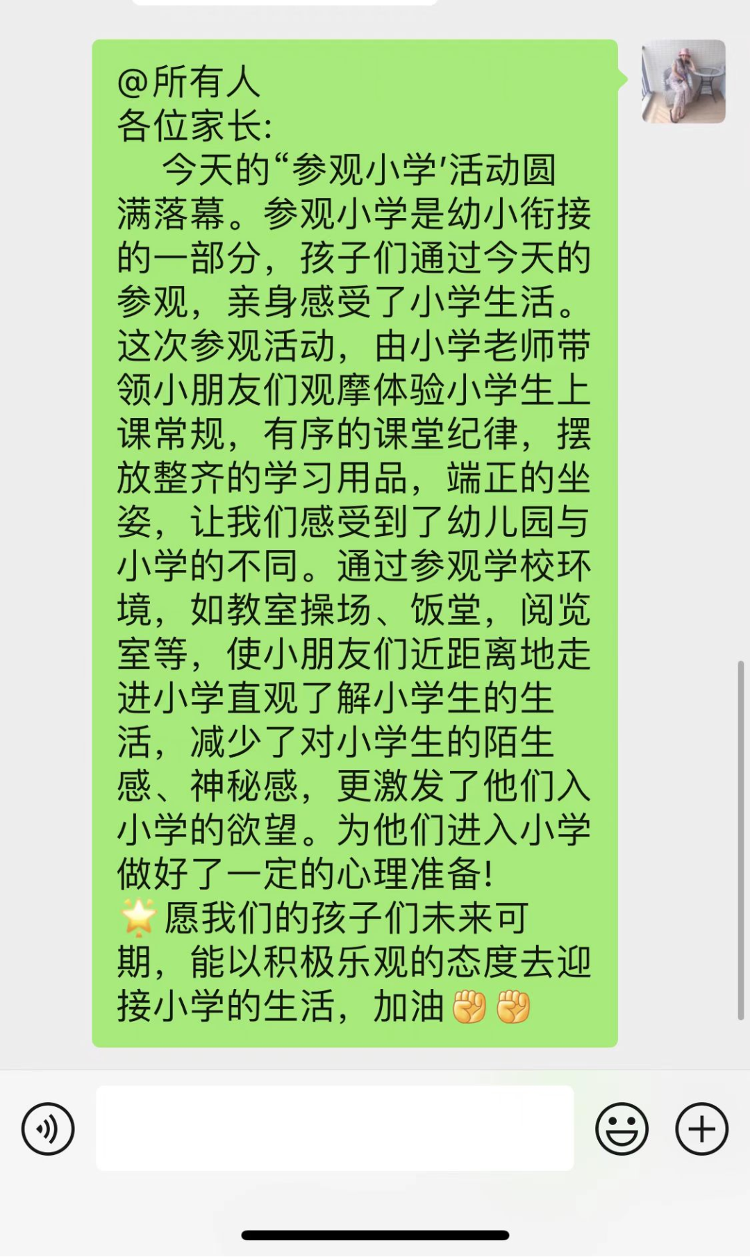 相信在不久的将来,孩子们也会像哥哥姐姐们一样,自信地迈着从容的步伐走进小学,在新的航程中扬帆远航,满载着快乐和收获。