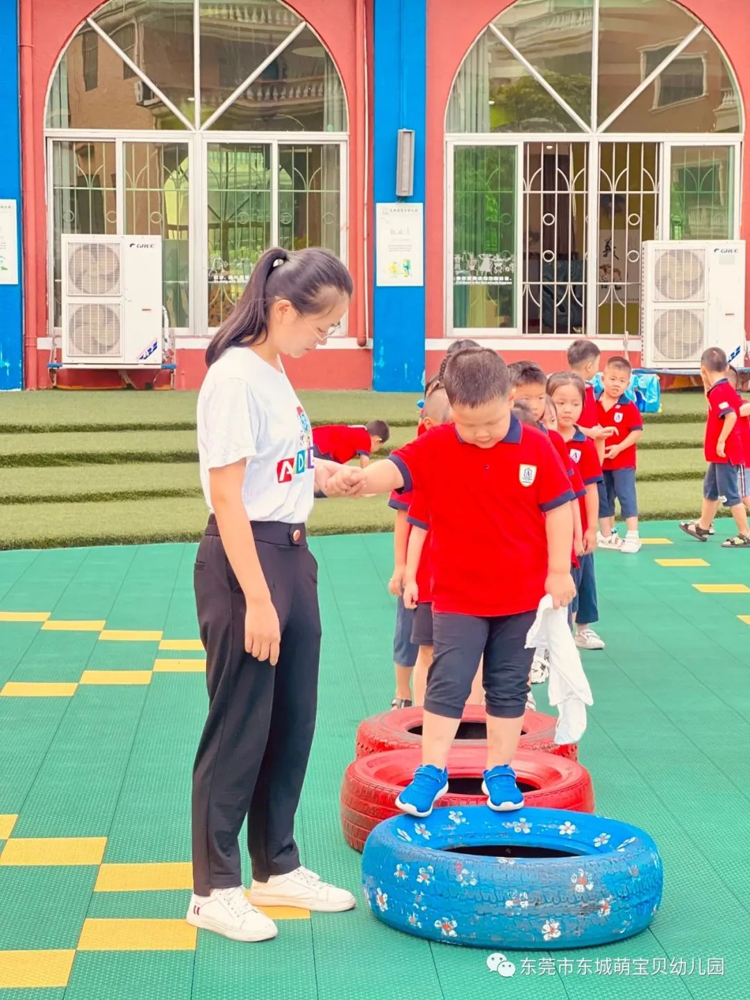 孩子们勇敢的品质可能源自于这里。“嘿,让我们一起跟着老师奔跑跳跃吧!