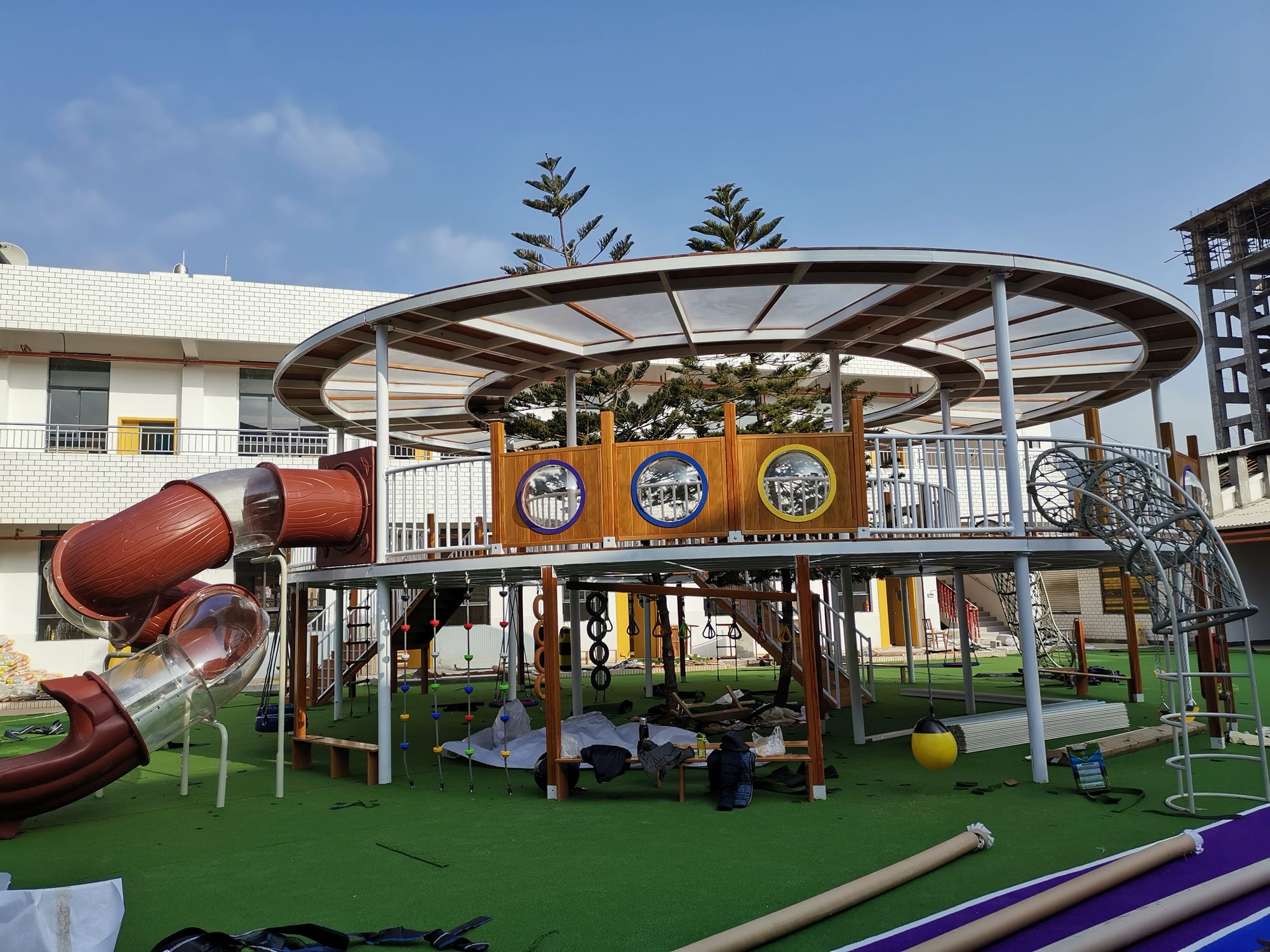 我们拥有宽阔的户外活动区域,配备多功能户外游戏和运动设施,专为幼儿园儿童设计。孩子们在游戏和运动中学习钻、攀、爬、跑、跳、跨、绕等技能。