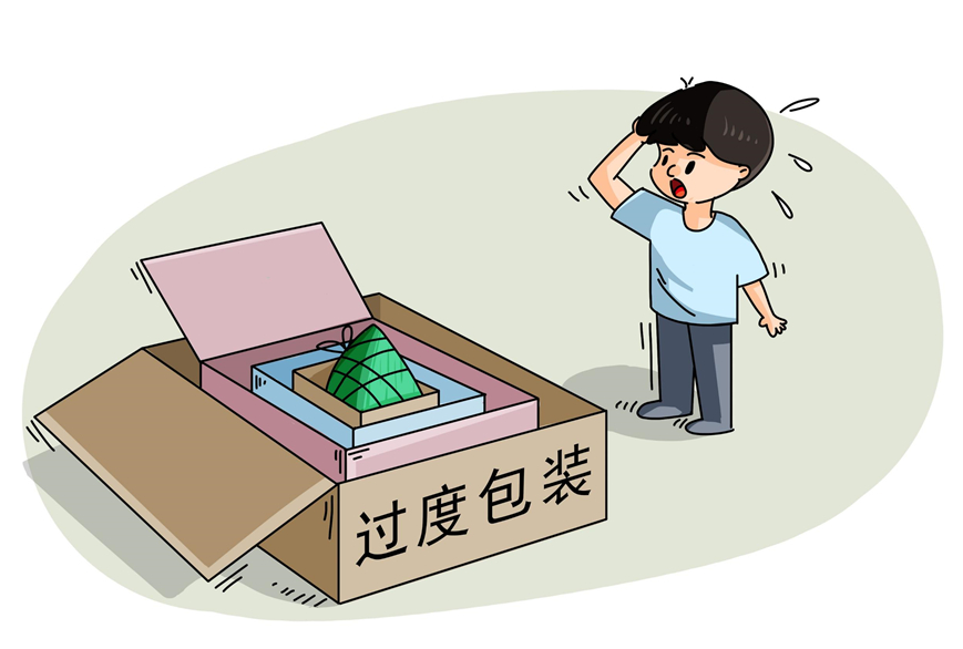 端午节作为中华民族的传统节日,人们会通过品尝美味的粽子来庆祝。因此,粽子类商品会在这个时间迎来销售高峰。然而,近年来,粽子作为商品,其包装从味道、品牌、原料等方面都在“卷”起来。许多粽子过度包装,不仅浪费资源,还会给消费者带来不必要的经济负担。过度包装主要体现在几个方面:使用贵金属、红木等昂贵材料作为包装材料;包装层数过多,包装空隙过大。商家通过宣传“仪式感”和“高端”,进一步助长了过度包装的粽子。