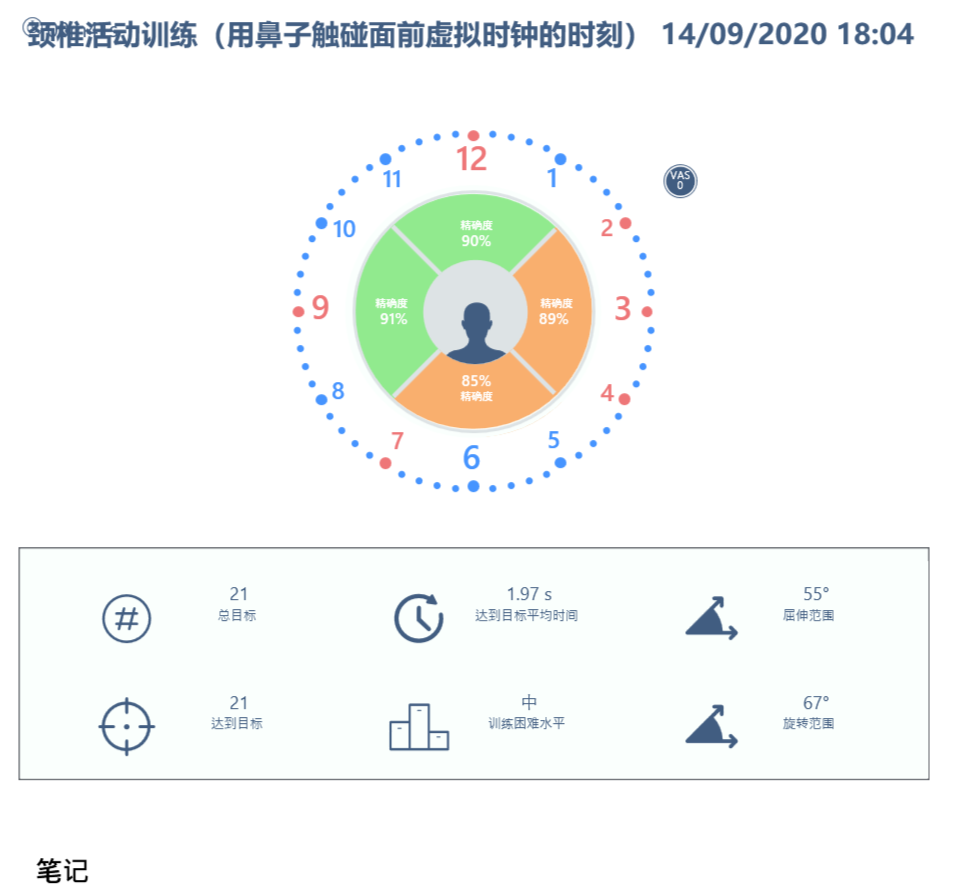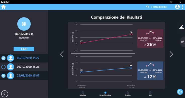 在治疗后的15天内进行第二次测试,在这15天中,患者每天进行一次颈椎康复,并在每次治疗后进行一组颈部运动训练,每半小时进行一次运动,持续30秒。结果显示,患者在治疗后不再抱怨头痛、头晕或颈部疼痛,但仍然感觉颈部底部肌肉紧张。患者意识到运动的好处,因此参加了皮拉提斯课程。根据Baiobit测试结果,治疗后颈部活动角度明显改善(约增加25%活动度)。