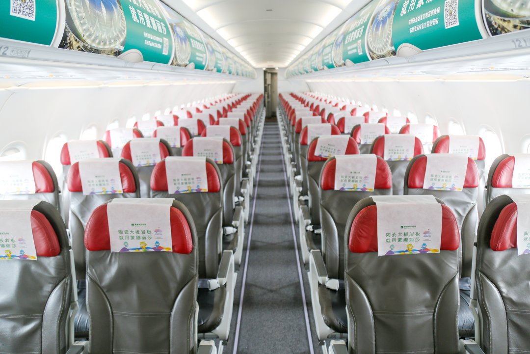 在这舒适的空客A320客舱中,乘客将沉浸在了一个特殊的空中艺术空间里。通过飞机内外的品牌标识、广告语以及杂志、广播等媒介,乘客可以了解蒙娜丽莎的品牌文化,并感受艺术的熏陶。