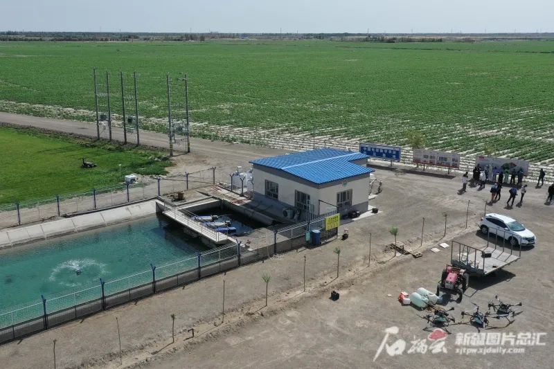极飞科技智慧农业示范基地位于尉犁县阿西木和田片区,俯瞰图(6月22日无人机拍摄)由石榴云/新疆日报记者蔡增乐提供。