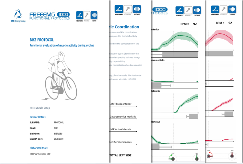 该协议能够让您精准地观察到运动员的肌肉运作方式,同时随着运动员在自行车上的位置调整,肌肉也会相应地变化。主要分析内容包括肌肉激活时间、振幅分析以及对称指数等。
