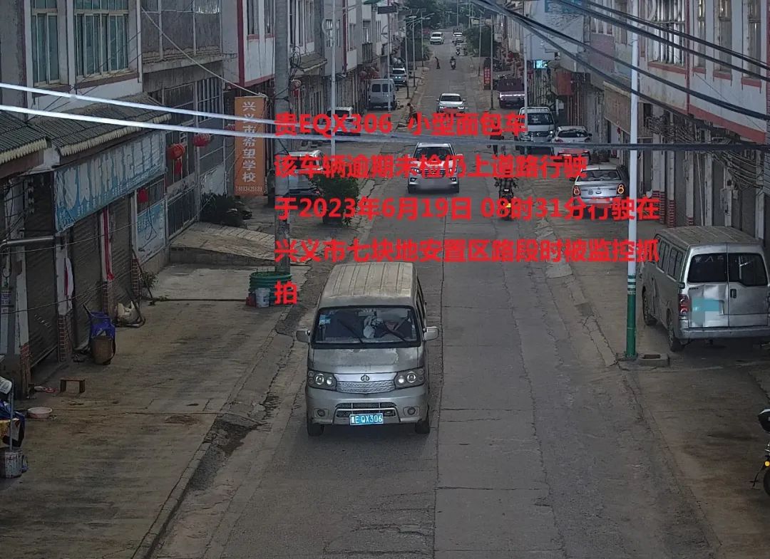 在2023年6月19日的08时31分,该车辆行驶在兴义市七块地安置区路段,被监控抓拍。
