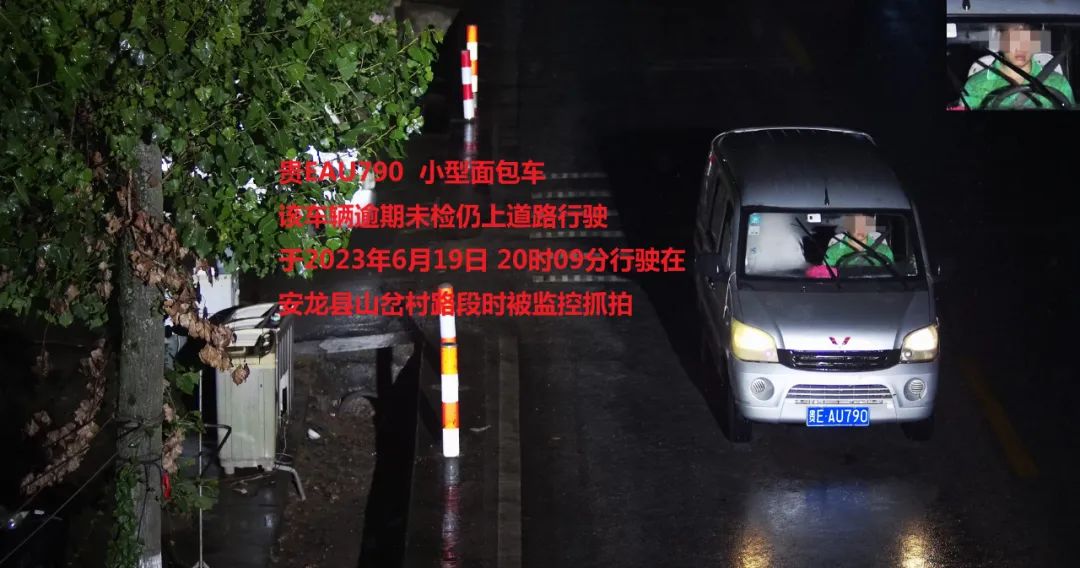 在2023年6月19日20时09分,该车辆在安龙县山岔村路段被监控抓拍。