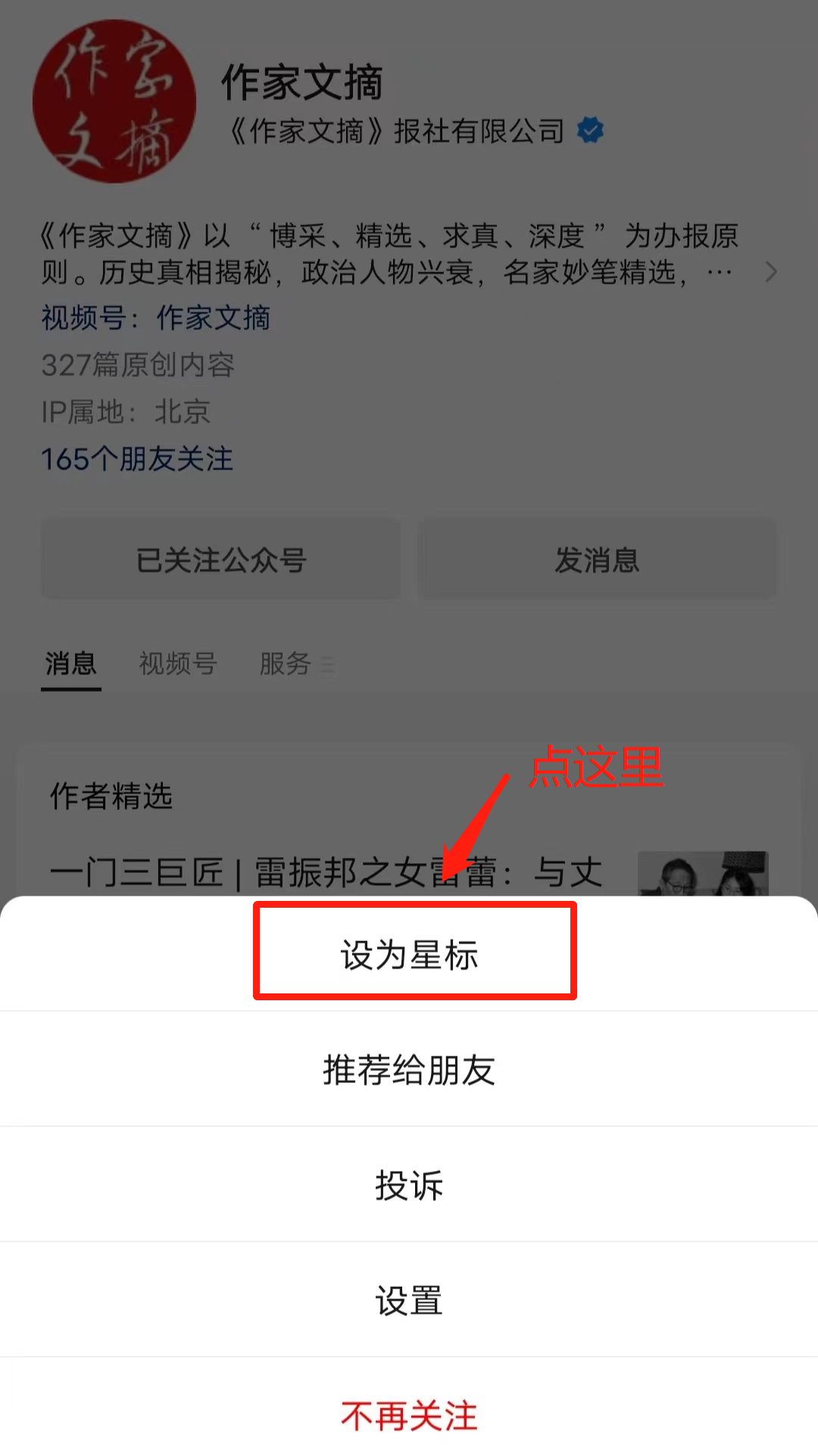 欢迎各位朋友按照以下方法简单设置,以便本号能够在第一时间为您推送最新文章:关注并进入公众号后,