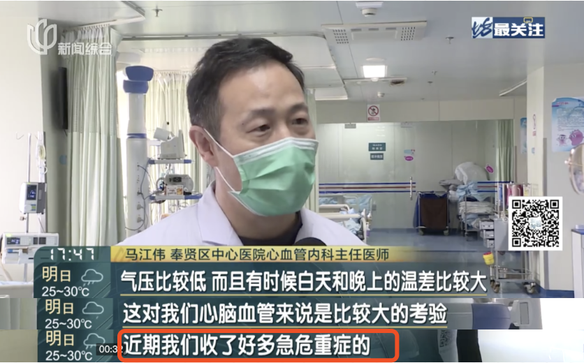 近期我们收了好多急危重症的心脑血管疾病患者。入梅以后天气比较湿热、气压比较低, 有时候白天和晚上的温差比较大,这对心脑血管疾病来说是比较大的考验。