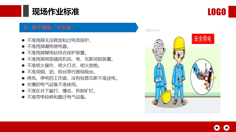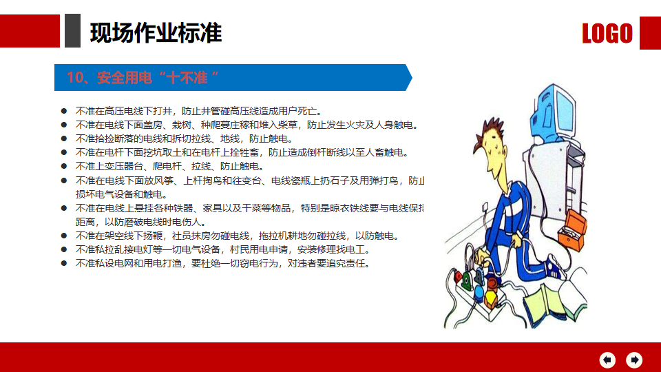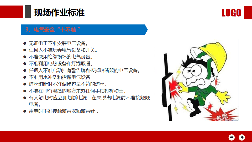 9.在高压电气柜或变电区域,严禁没有安全措施的情况下站立。